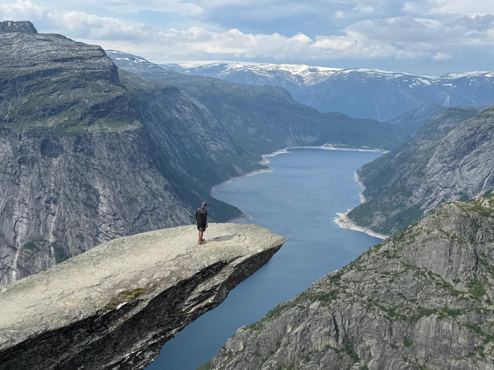 this is trolltunga. didn’t think I would actually walk out on the outcropping, but here I am. standing there, freaking the fuck out.