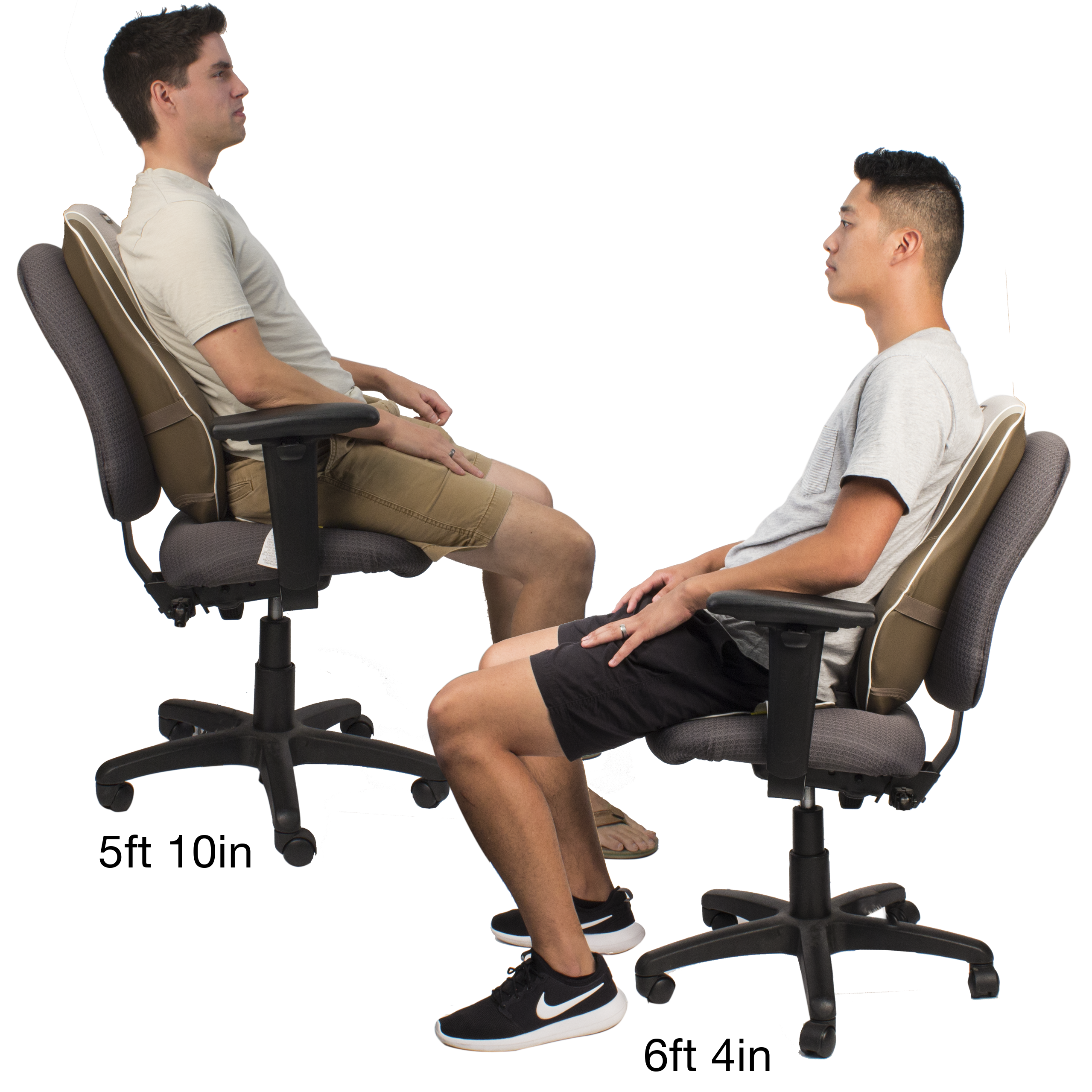 I have this thing, or a very very very similar version, and it’s bullshit. I’m only about 65" tall and the upper end of it MIGHT reach my shoulder blades. Trying to hunch down in the chair is desperately uncomfortable. Trying to hoik the machine up higher in the chair doesn’t work, because it’s not designed for it and just falls back down. Also, it’s thick enough to be obtrusive in all the office chairs I have tried, including an Aeron, a deep Hon task chair, and some random Office Depot numbers.