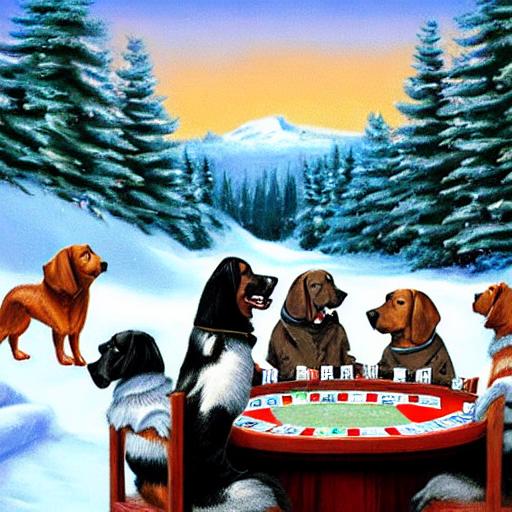 /showme dogs playing poker winter scene