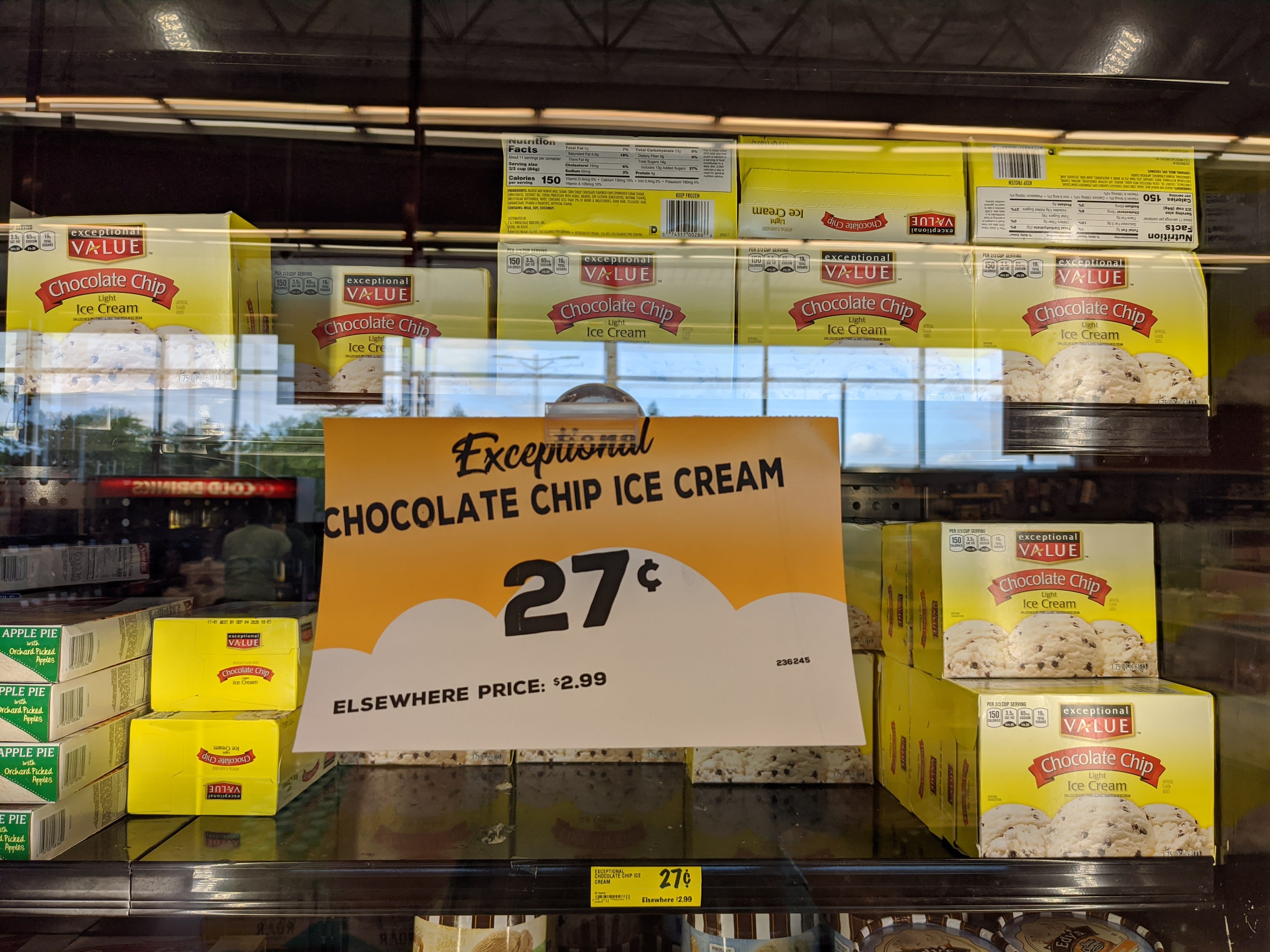 @pmarin Just don’t buy this chocolate chip ice cream. It wasn’t worth the 27¢ that Grocery Outlet charged. (More like exceptionally tasteless!)