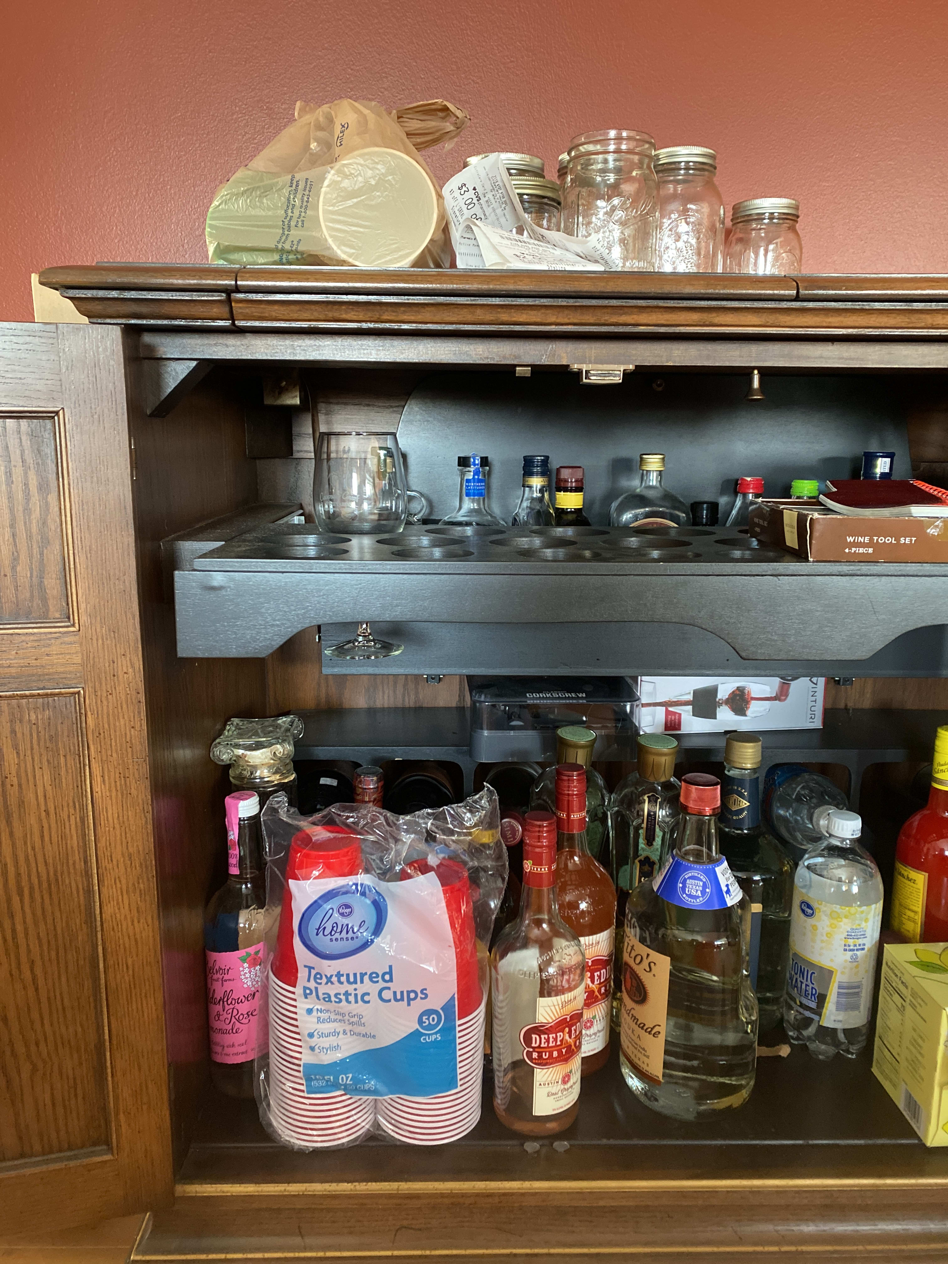 So after all that, I went to put my glasses in the rack and none fit. I don’t know what kind of tiny bottom used to fit in there but I’m gonna be on the look out from know on. For know it’s gonna continue to hold my shaker set, mixing tools and recipe books.