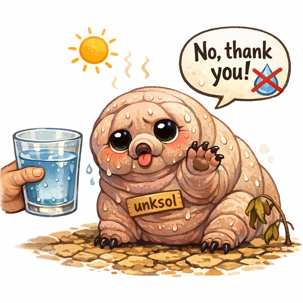 @cfg83 Here’s the image you requested for “Super cute tardigrade named “unksol” looking a little parched but saying no thank you to water.”