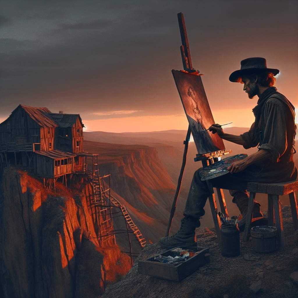 /showme an artist painting a picture on the cliff next to The Dread Inn at Death Rock