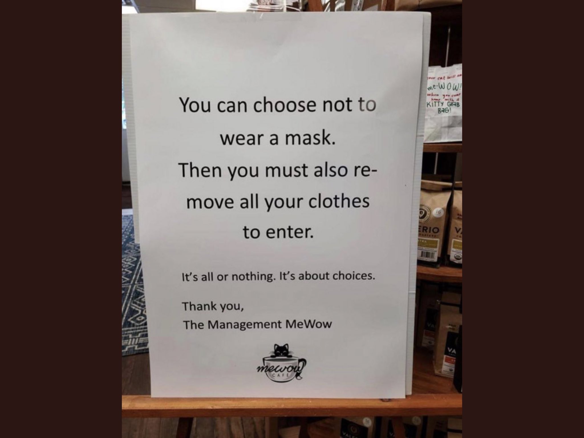 We trust you to make your own choices if you want to wear a face mask. And, in the same spirit of individual liberty, we allow our staff to make their own choices about the safety procedures they prefer to follow as they prepare and serve your food.