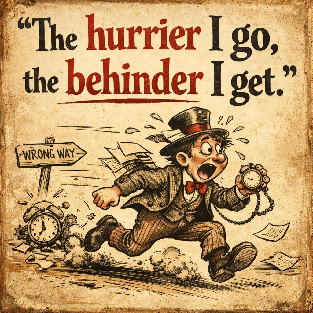 /showme the hurrier I go, the behinder I get