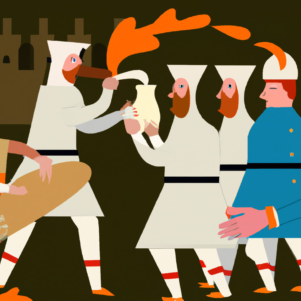 /showme medieval soldiers pouring burning heavy duty mayonnaise on the attacking soldiers