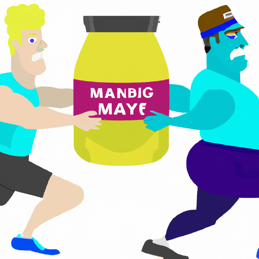 /showme strongman competition but they are lifting heavy mayonnaise instead of weights, photo realistic