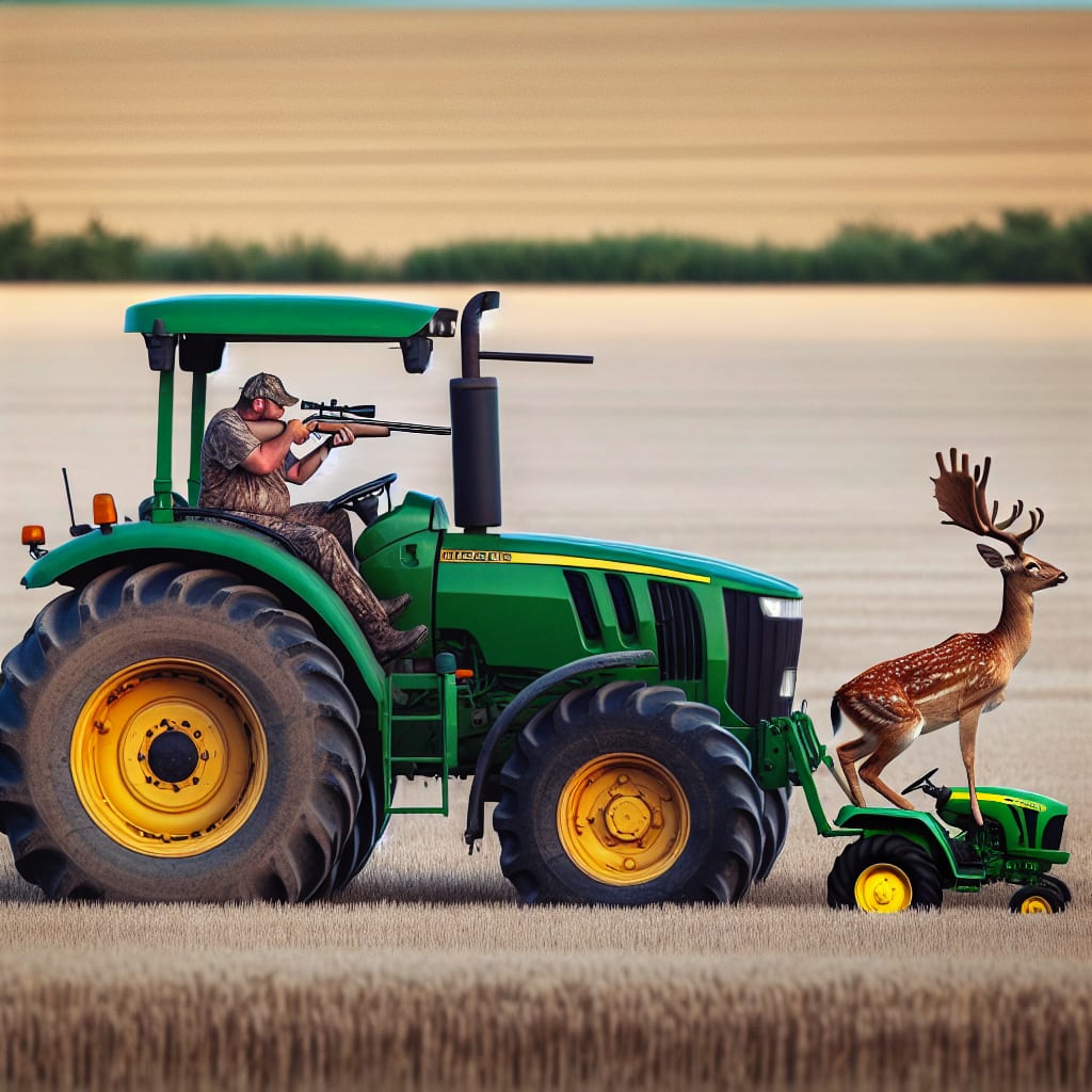 /showme a hunter in a John Huntere tractor hunting a deer in a John Deere tractor