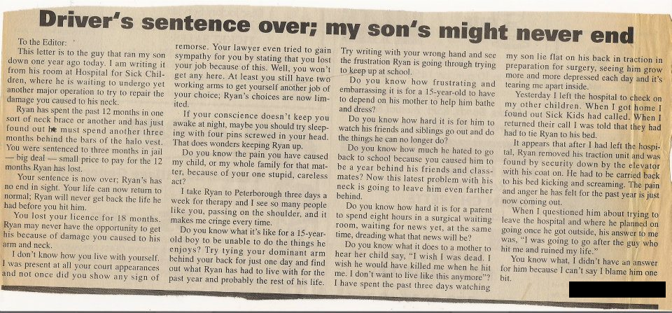 @therealjrn This was written by my mom, a year after the accident, and published in the local paper.