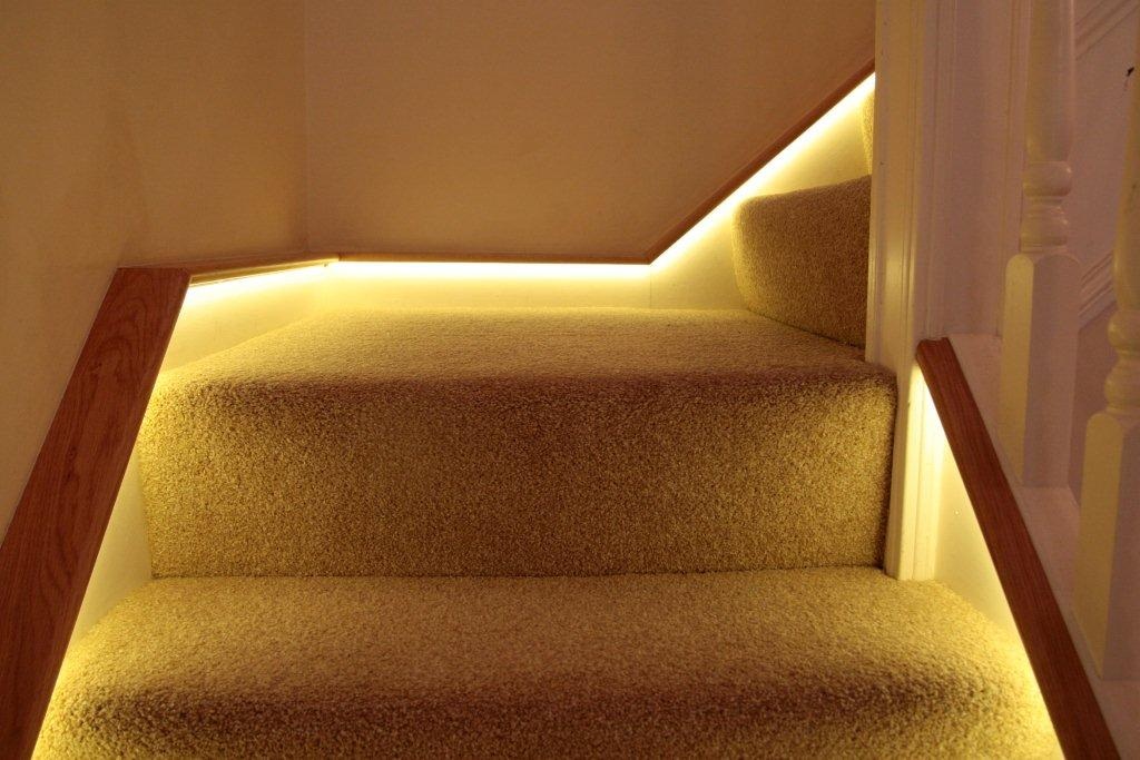 @luvche21 Just LED lights close the the actual steps of the stairs, controlled by a switch at either the top or bottom of the stairs. You could also have them be on a motion sensor, which is an easy enough DIY project.