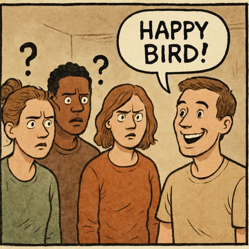 /showme people looking at me with confusion when I smile and say āHappy Bird!ā.
