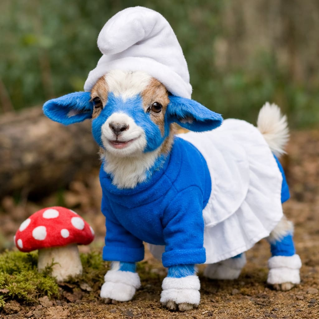 /showme a three year old goat named f00l as she dressed up as a smurf