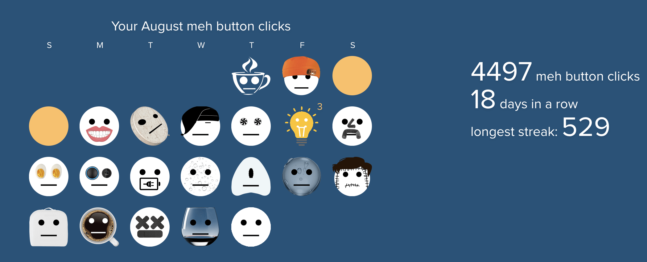 And to think at one point meh was going to do away with them as the community highjacked the original purpose of the meh button (which was to click if you disliked the product that day) and turned it in to a contest of sorts to keep your streak alive.