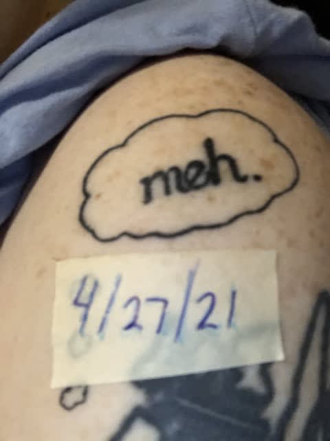 And can I just say taking a pic while trying to hold something up to my shoulder is a real pain in the ass. Which is why I used masking tape. My watch kept going black since it’s past my bedtime, then it wanted my passcode because I had it off my wrist to take the pic because the tattoo is higher up. I tried balancing my iPad near my shoulder. I tried putting the phone up and taking the pic with the iPad. Using the mirror just shows the phone and no date. So I said fuck it and slapped some tape on my arm.