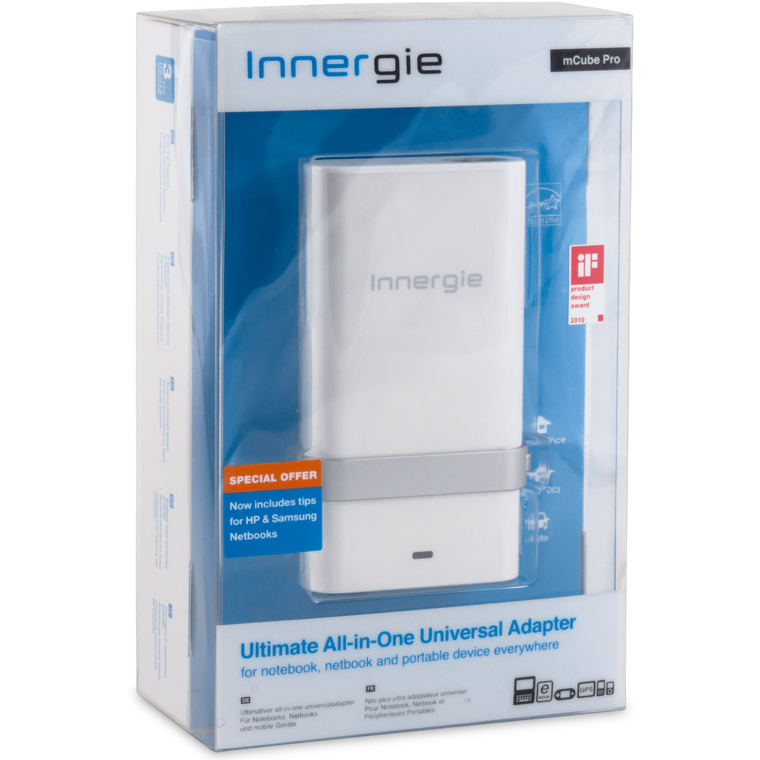 Specs====- Model: TADP-70BB AK- Universal Laptop Adapter - Voltage compatibility: 15-21 volts- Wattage: Up to 70W- Compatible with Acer, Asus, Compaq, Dell, Fujitsu, Gateway, HP, IBM, Lenovo, MSI, Samsung, Sony, Toshiba, and more- Plugs into EmPower airplane ports, car cigarette lighter ports, and A/C outlets- Protects against: Over-Current, Over-Voltage, Over-Temperature, Over-Power, Short-Circuit- AC Input: 100-240 Vac /1.8A 50-60Hz- DC Input: 12-15V (DC) / 8A - DC Output: 19.5 V DC / 3.33A, 16V DC / 4.06A, 5V DC / 1A - USB Output: 5V DC/ 1A - Output Power: 70W Continuous (85W Peak)Condition: NewWarranty: 3 Year InnergieShipping: $5 or free with VMP What’s in the Box?====1x mCube Pro Adapter1x AC input cable1x DC input cable1x DC output cable10x Tips1x Air plug1x Car plug1x Travel pouch1x User ManualPictures====Retail boxEverything inside[Adapter for AC] (