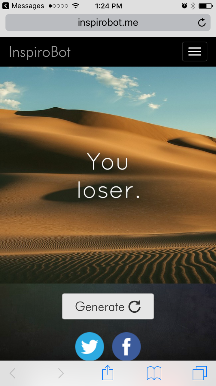 Earlier today I sent my wife the url to inspirobot and she immediately sent back this screenshot and the following message: