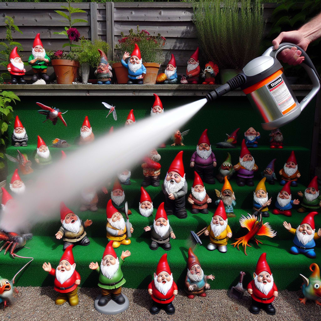 /showme defective stick vacuum spraying flammable paint onto garden gnomes