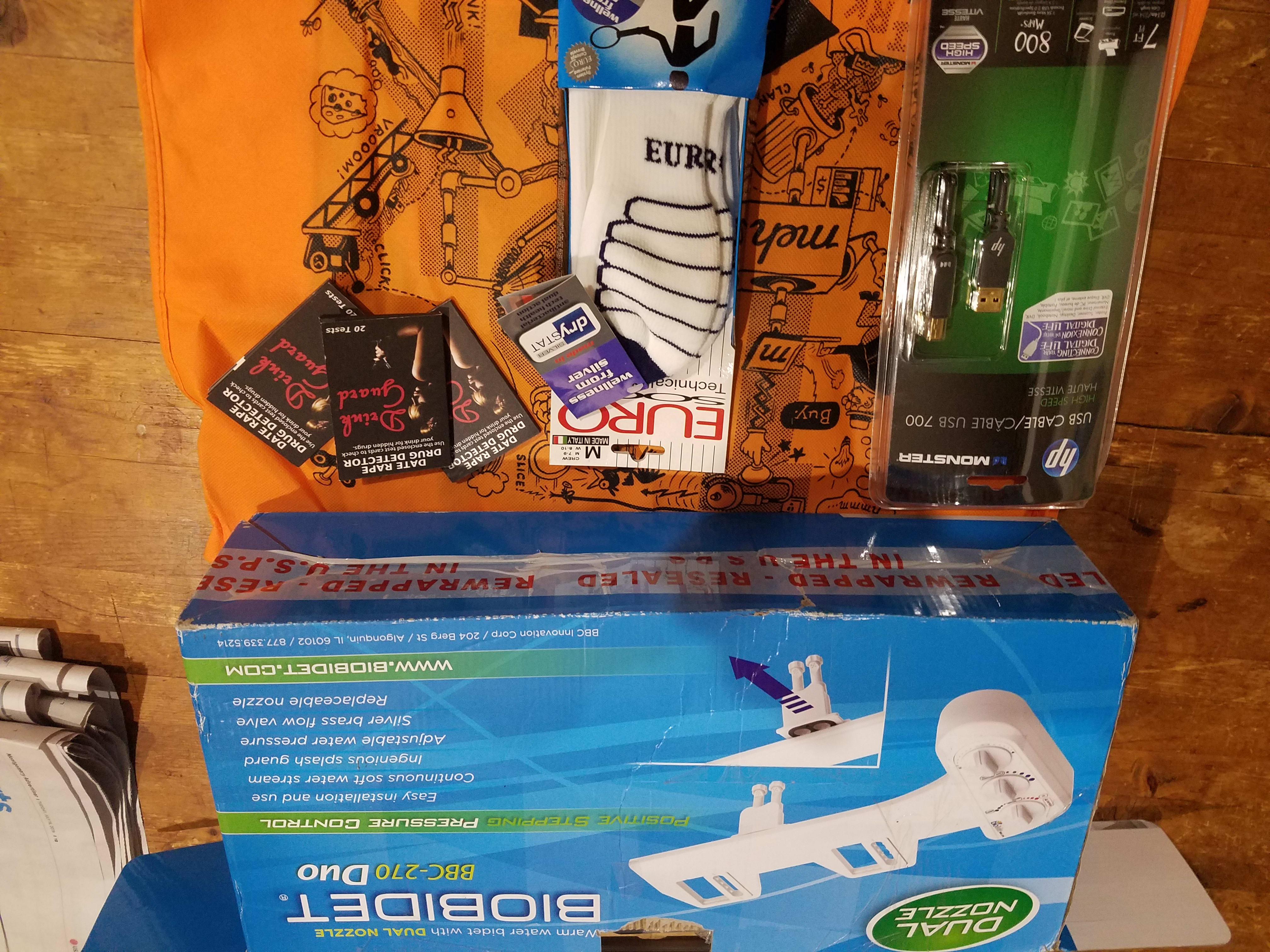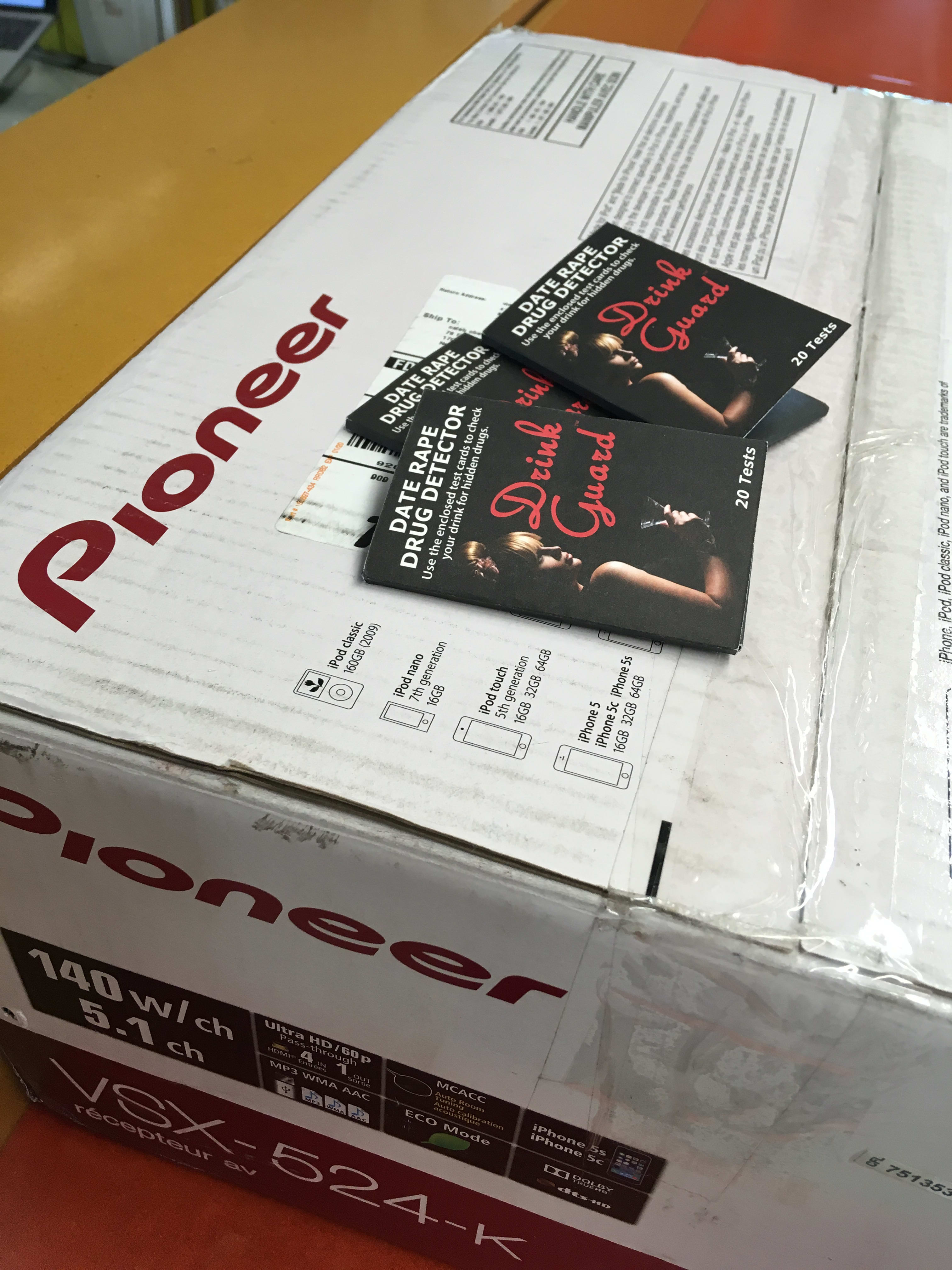 • 3 packs of 20 unused ‘Drink Guard’ brand DATE RAPE DRUG DETECTOR cards which I think I’m supposed to use to make sure I’m not getting “fake” GHB or Ketamine