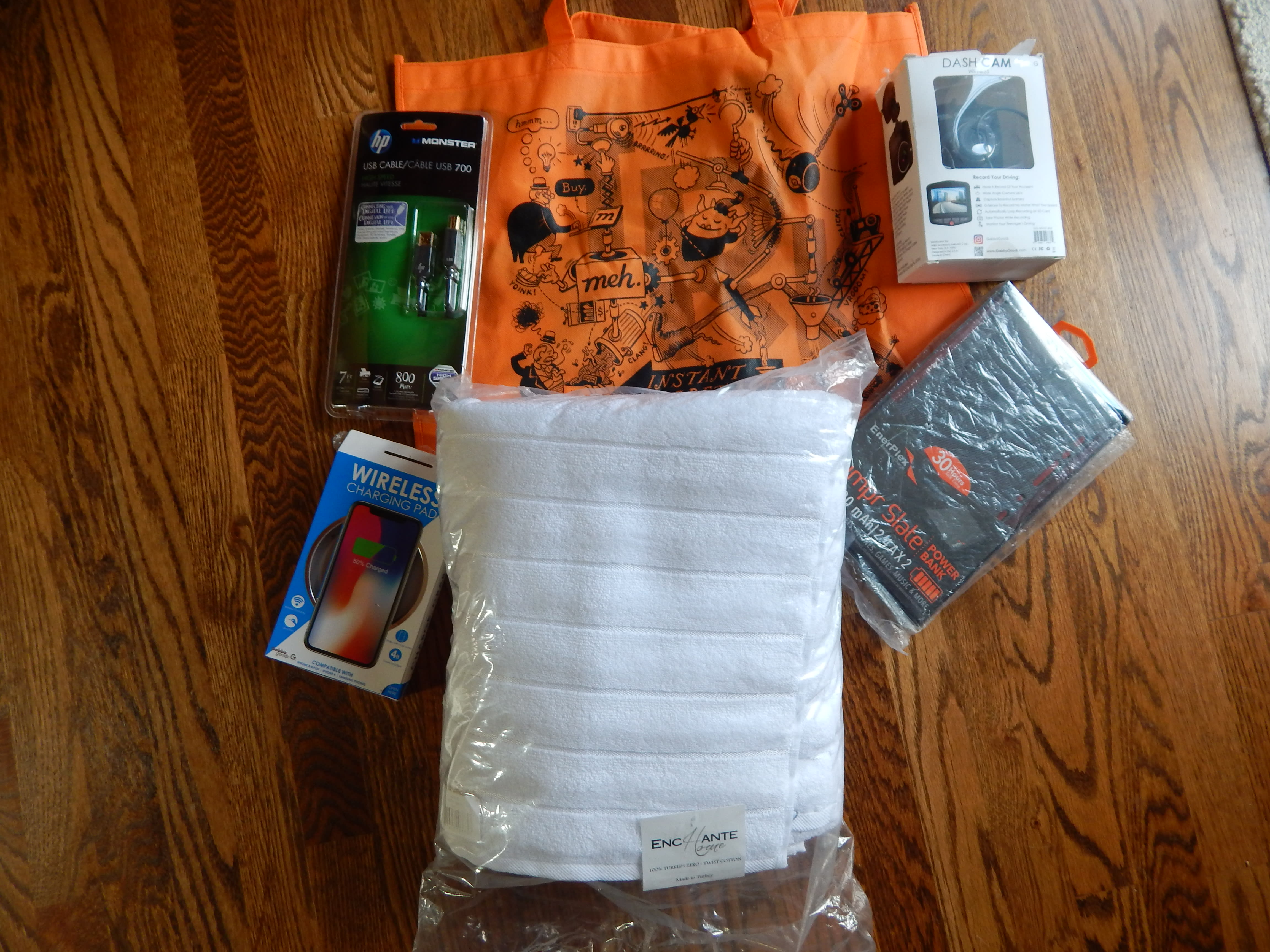 My IRK arrived!!! It had a professional makeup brush set, an IRK bag (my fav), 4 10-ft charging cables and 5 (yes, that says FIVE) various Striiv fitness trackers. Sorry Meh, no regrets!