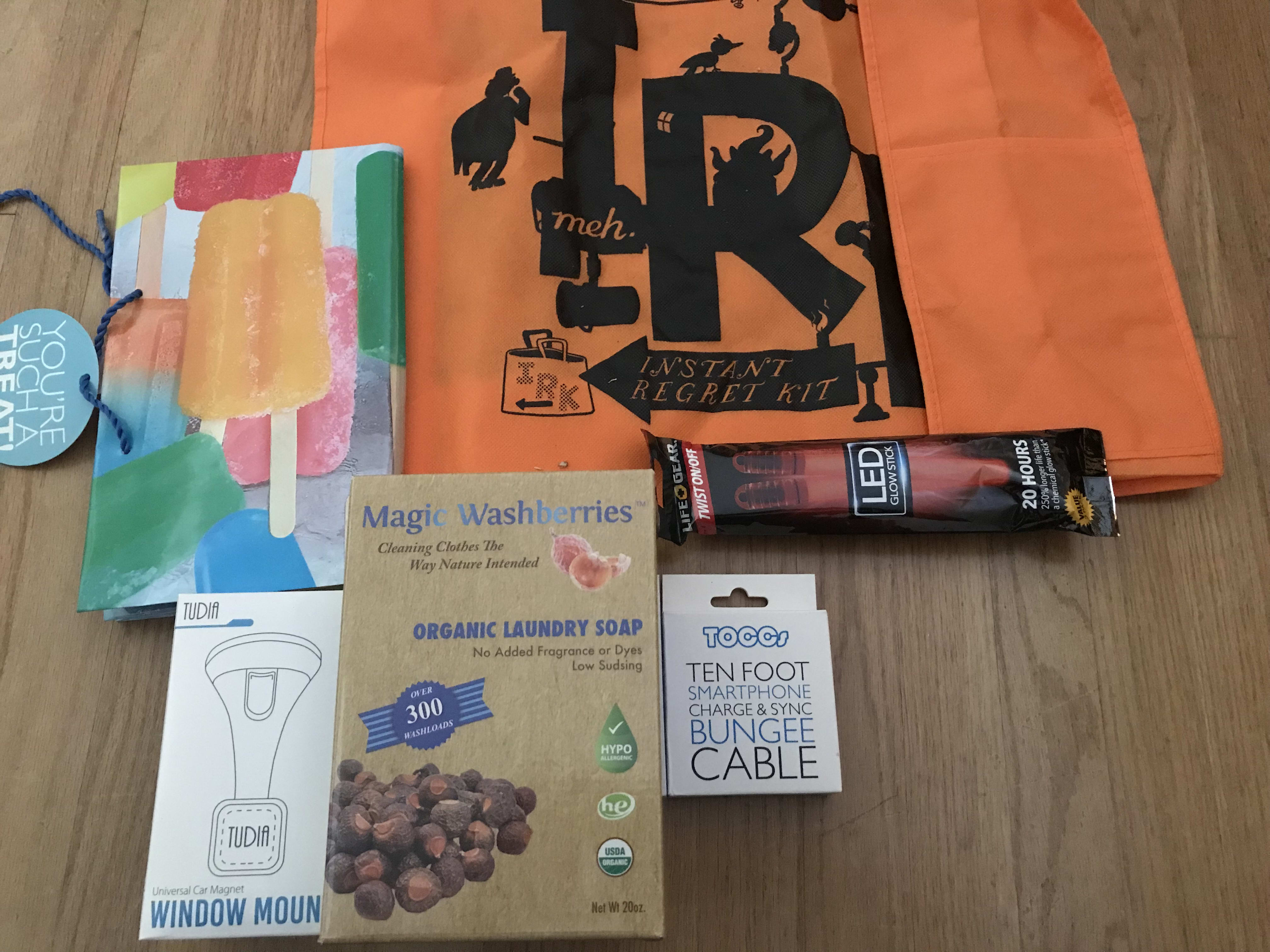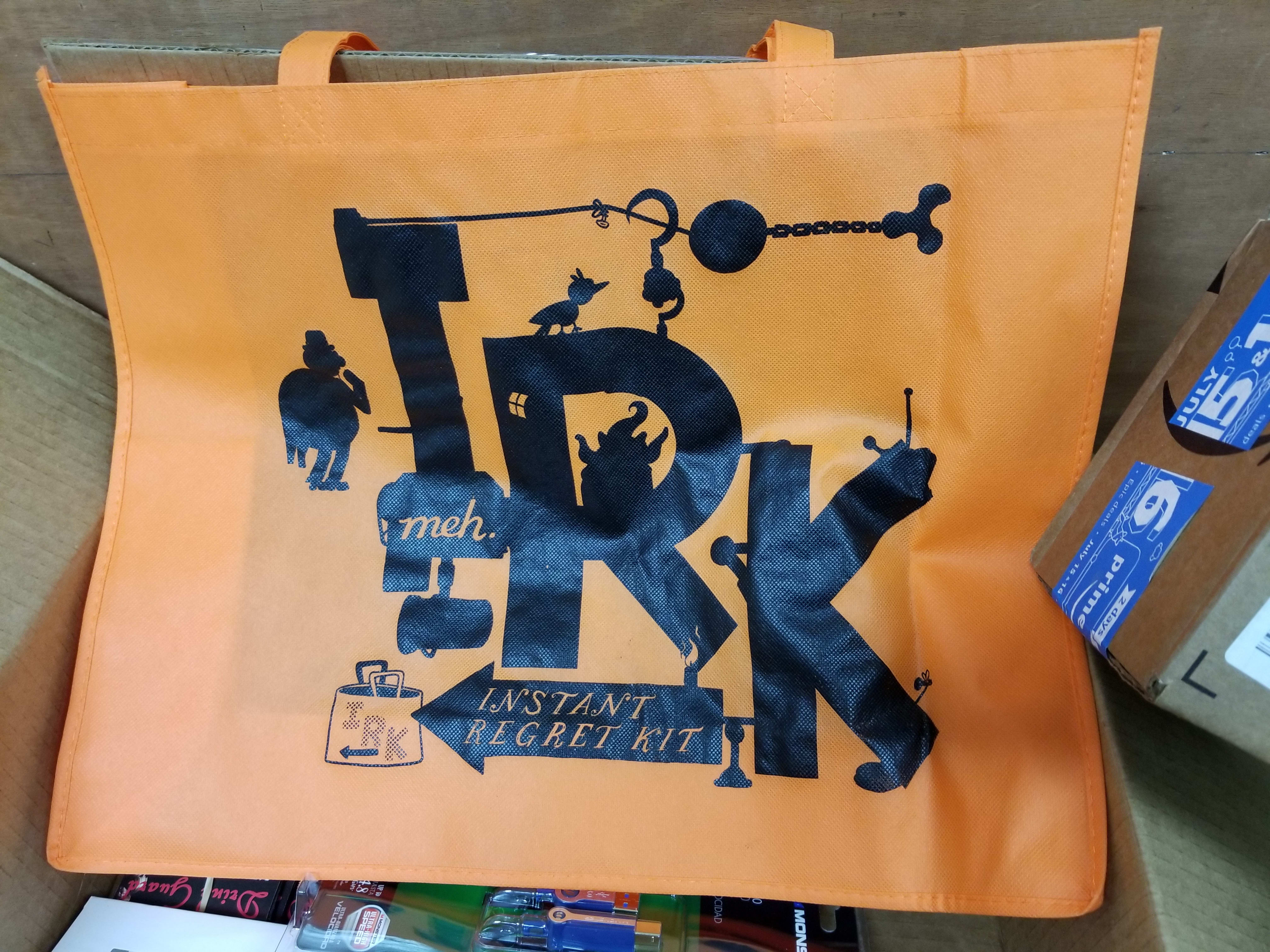 I think you take the “Gift Bag” and put the other stuff (minus the IRK bag) in it and re-gift it to someone who has a birthday in July/August. It’s regrettably enjoyable!