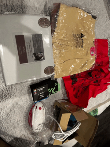 Mine just arrived. Got an IRK bag, 2 pet bowls, a pet food mat, flashlight/lantern, faux leather purse, and bluetooth headphones that looks like it was a return. Very MEH.