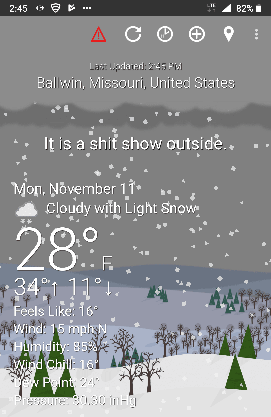 @mike808 i had.to drive all the way to Ofallon, MO and back today and it was crazy. I could only see about 10 ft in front of me at any point this morning.