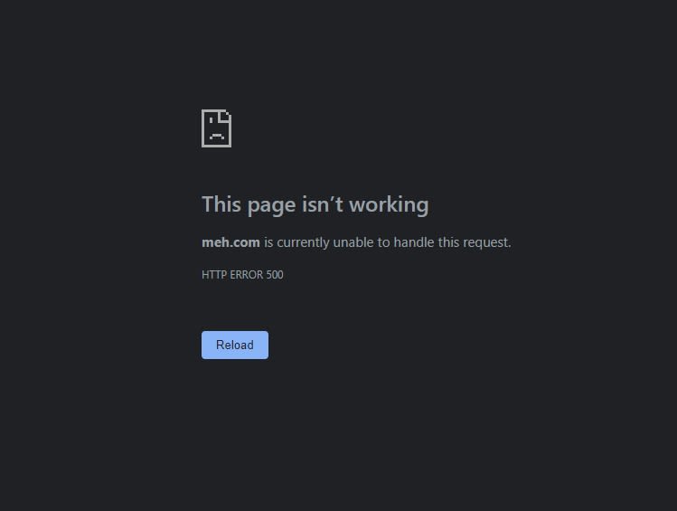 Same same. Sometimes the SideDeal banner up top will update while the old Meh item is still showing for a few seconds, and then it goes all Irk500.