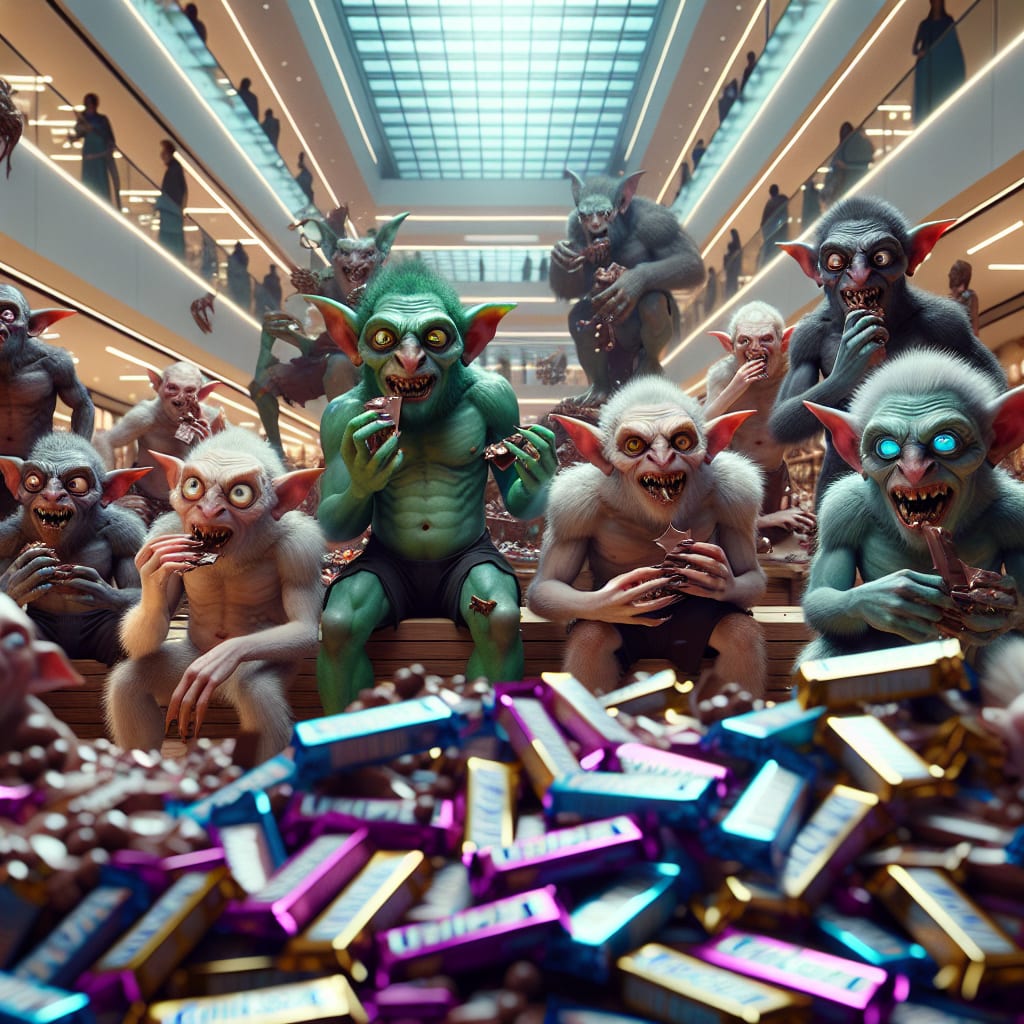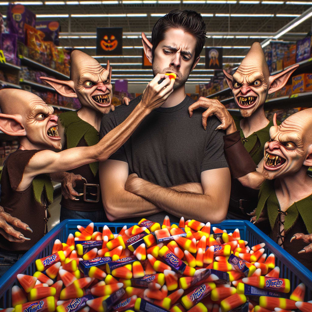 /showme a bunch of imps force feeding candy corn to a dejected meh shopper