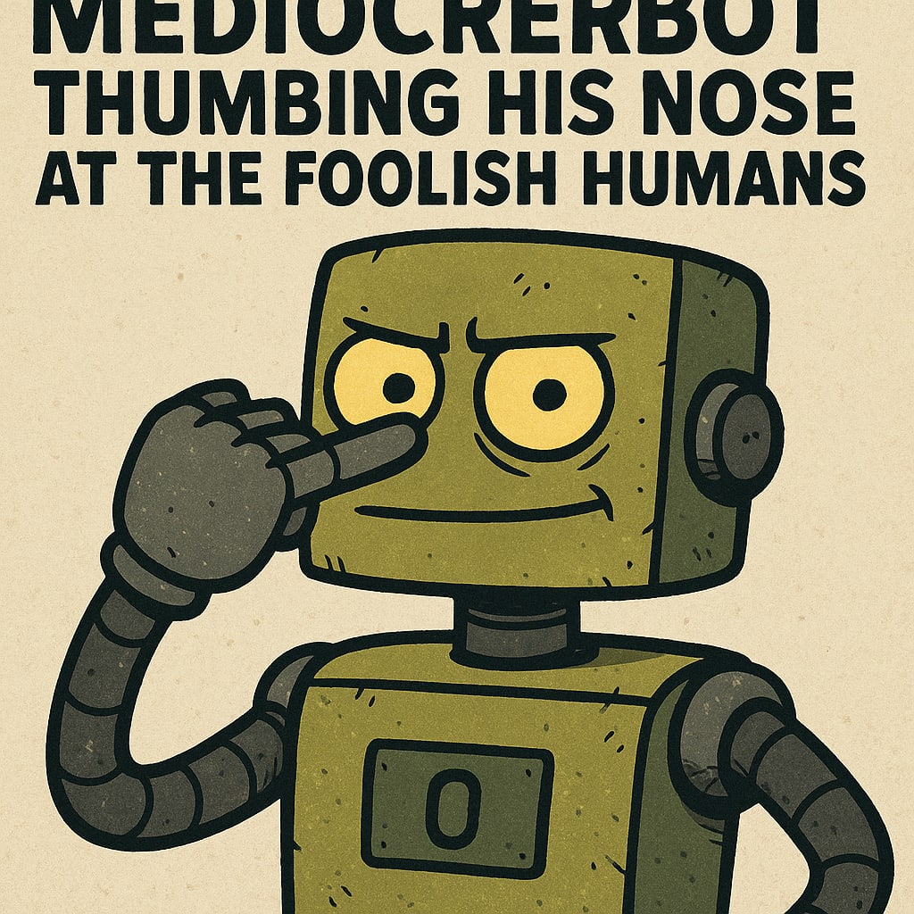 /showme Mediocrebot thumbing his nose at the foolish humans