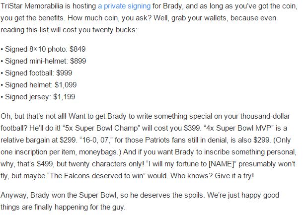 I’m pretty happy about the impending return of Brady’s Super Bowl XLIX and LI jersey’s but I’m most happy that it’s given me another opportunity to remind you all that