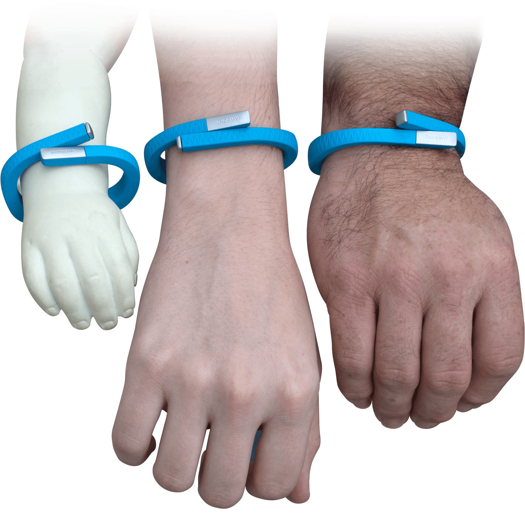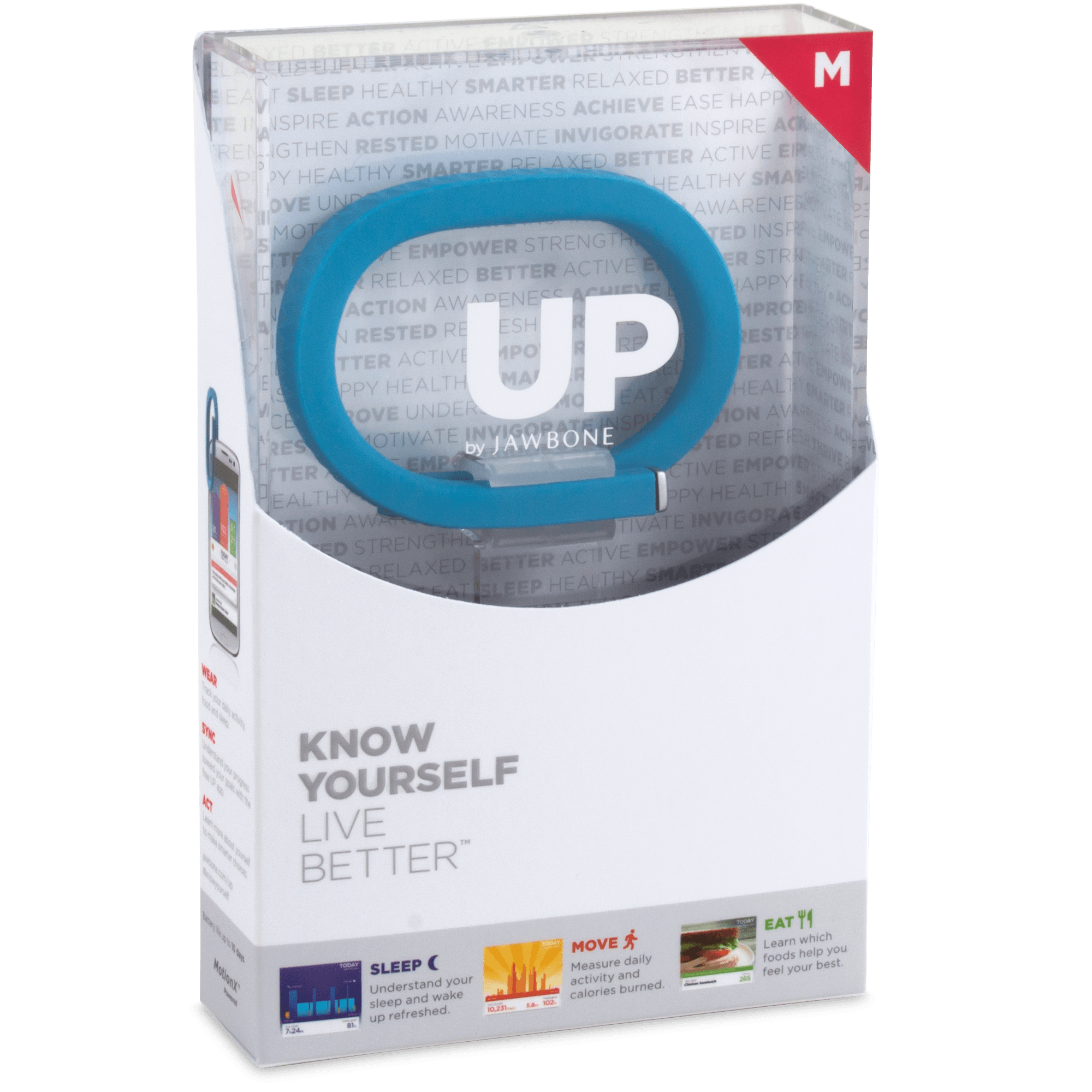 Specs====- Model: JBR06B- Compatible with Android 4.0 (Ice Cream Sandwich), iOS 6.0 or later, and Amazon Fire phone- Designed for 24/7 wearing (except for when it’s charging; battery life is up to 10 days)- Track steps taken, calories burned, and distance- Track total hours of sleep, time to fall asleep, and sleep quality- Log the nutritional info of what you eat and drink in the app- Sizes: Large (7-8in circumference), Medium (6-7in circumference), Small (5.5-6in circumference)- Water resistant, so it can be worn in the shower- Syncs through headphone jack, not bluetooth- Charges via USB-to-3.5mm female cableCondition: NewWarranty: 1 Year JawboneEstimated Delivery: 12/22 - 12/24 Shipping: $5 or free with VMP What’s in the Box?====1x Jawbone UP1x USB charger1x User manualPictures====LargeMediumSmallSize referenceThe charging/syncing plugEverything in the boxPrice Check====$64.99 at Amazon for Small$54.99 at Amazon for Medium$59.99 at Amazon for Large