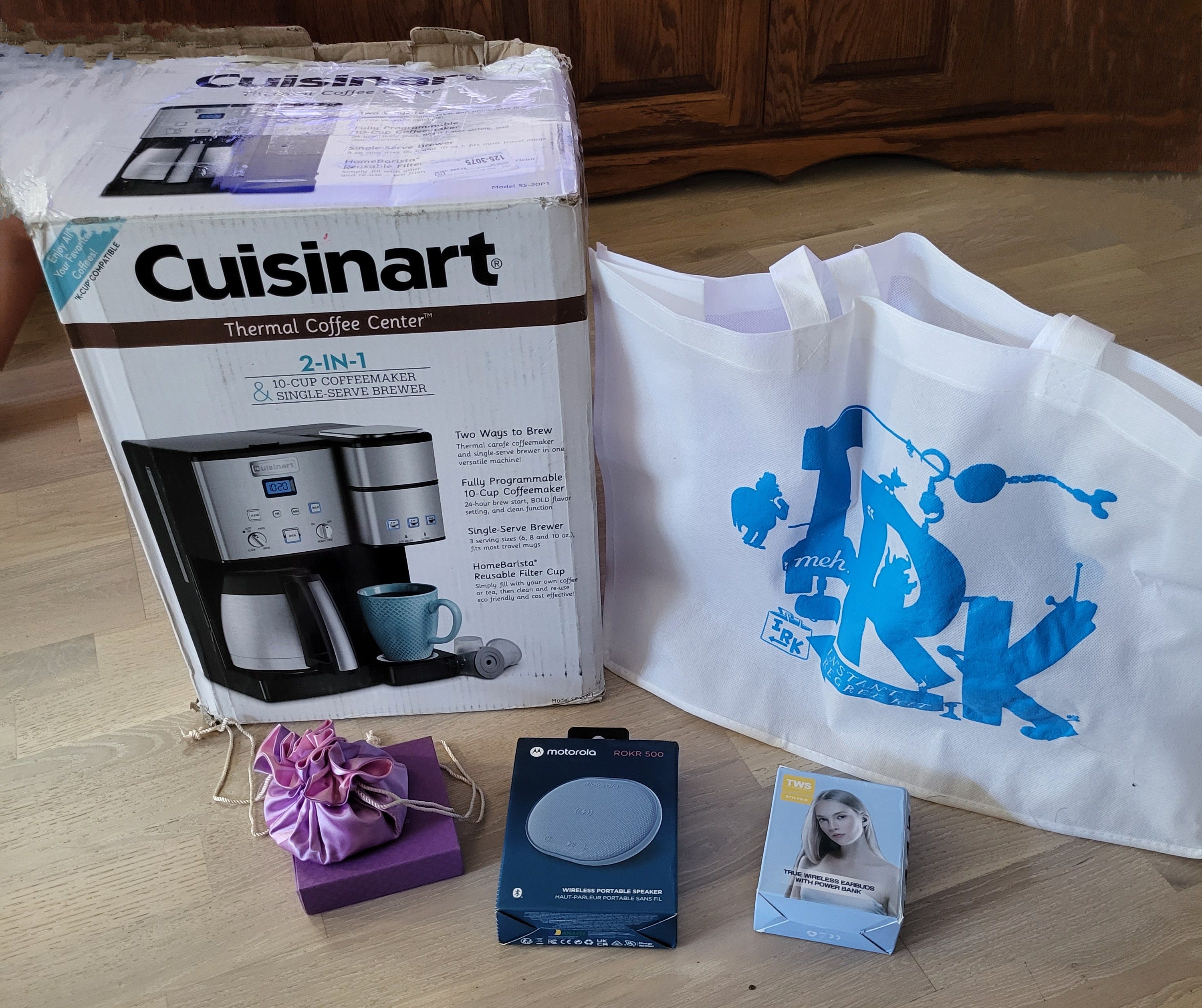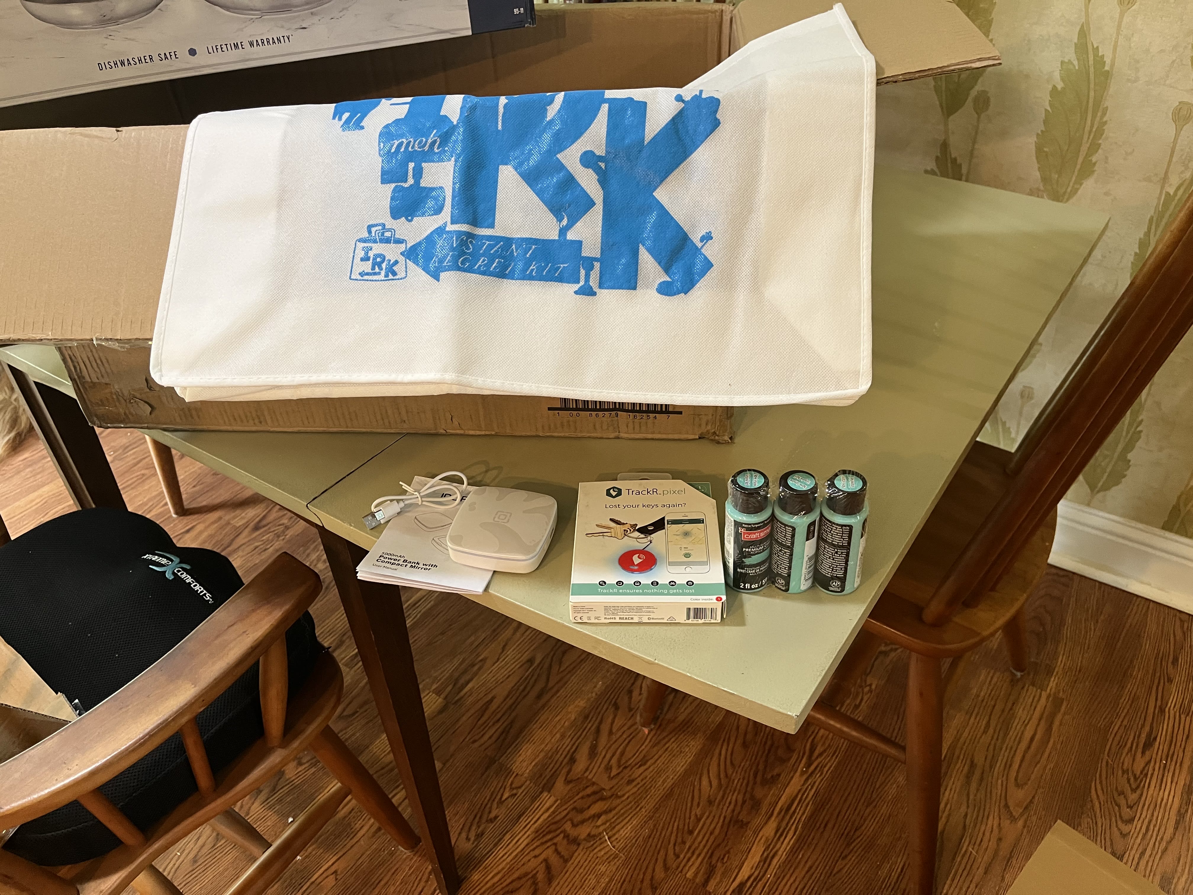Got a brown IRK bag, pair of splashproof Bluetooth speakers, a SMARTech rechargeable flashlight/jump starter/power bank, and what I think is a mattress topper for a twin size bed. I say think, because it’s one of those things that will expand massively once you cut the super tight plastic wrap, and the label telling you what it is that likely went around the super tight plastic wrap is missing. It is twin size, and 18" deep, so fitted cushion top mattress topper seems most likely. Strangely, I’ve been shopping for a new mattress and boxspring in that size for the guest room. This will actually come in handy.