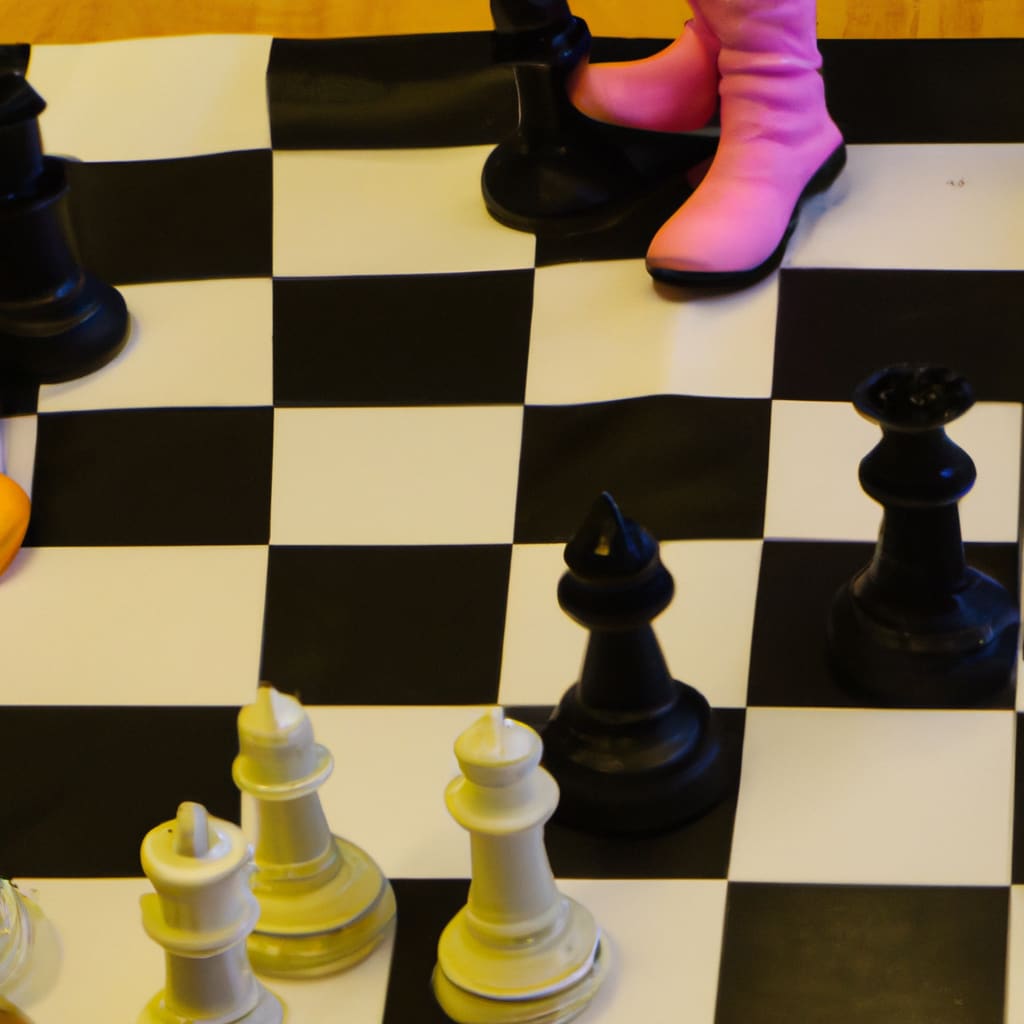 /showme a mediocre game of chess. Replace the black pieces with purple trolls and the white pieces with red and white stripes socks.