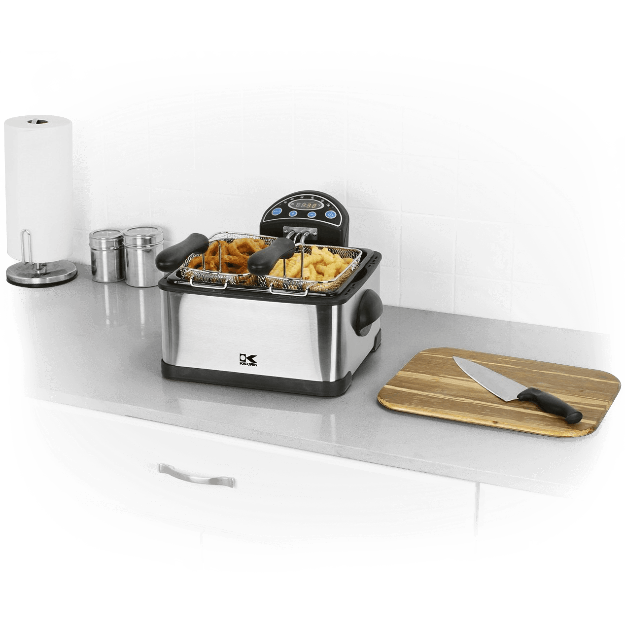 Specs ====- Model: FT26175- 4L/QT capacity- Temperature range: 255F - 375F- Stainless steel lid with window and filter for storage and splatter protection- Immersion heating element- Non-slip feet- Digital LED display- Temperature and time adjustable, with digital control- 3 frying baskets (1 large, 2 small)- Side handles for secure carrying- Dimensions: 15.7 x 15.4 x 9.3 in.- User manualCondition: New Warranty: 1 Year Kalorik (page 14)Estimated Delivery: 3/7 - 3/9Shipping: $5 or free with VMP What’s in the Box? ====1x Deep fryer2x Small fry baskets1x Large fry basket1x LidPictures====Deep FryerWith lidOn a counterPrice Comparison ====$99.99 List, $79.99 at Amazon (0 reviews, sold by third party)Find a relevant price comparison? Please share it in a comment in this thread