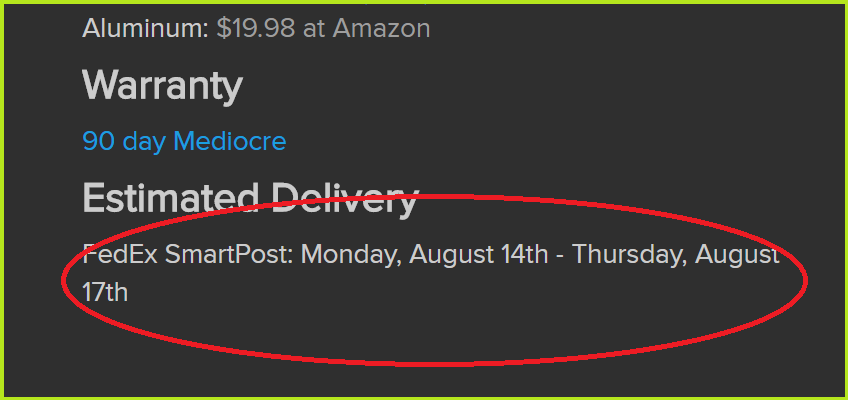 @mattardz They still have lots of time mine is processing. “FedEx SmartPost: Monday, August 14th - Thursday, August 17th”