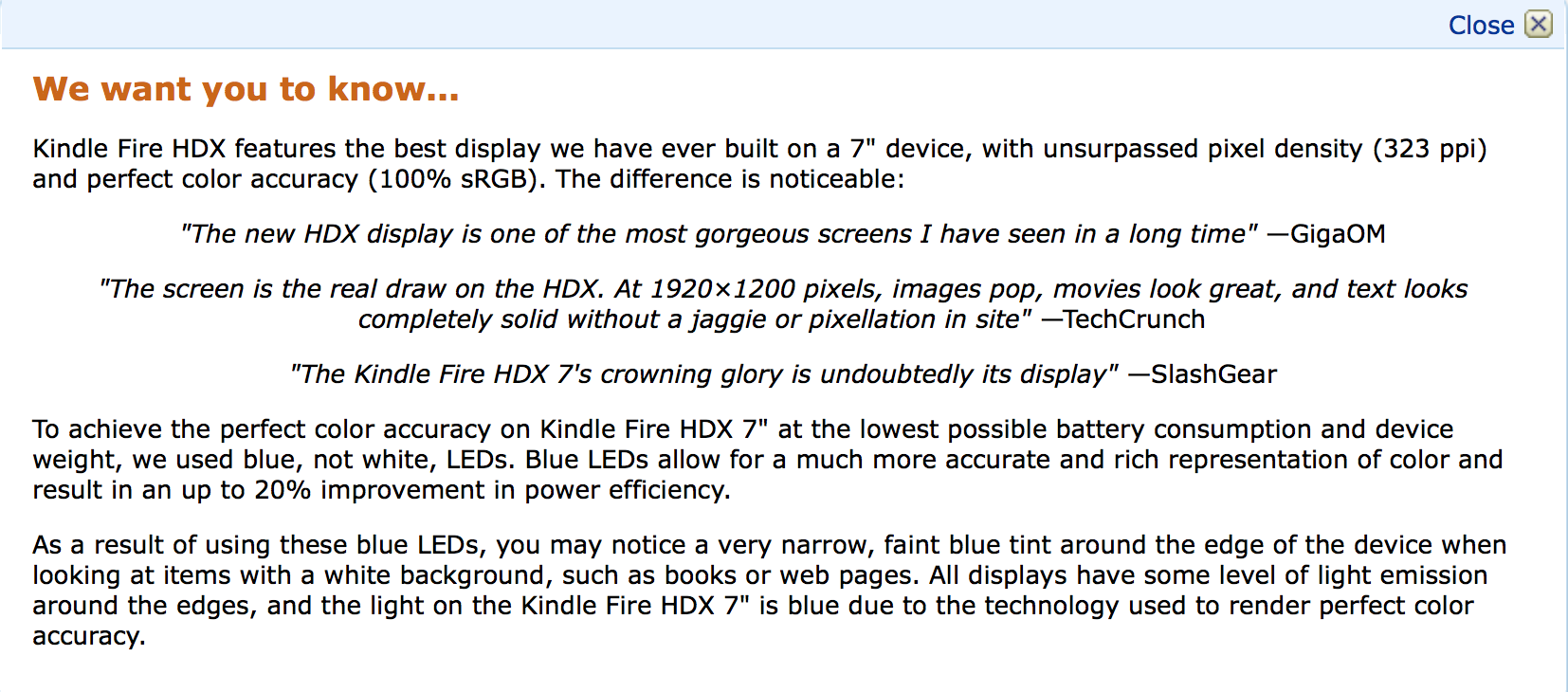 Scroll down a bit on the Amazon HDX page and click Learn More in the We want you to know... section.