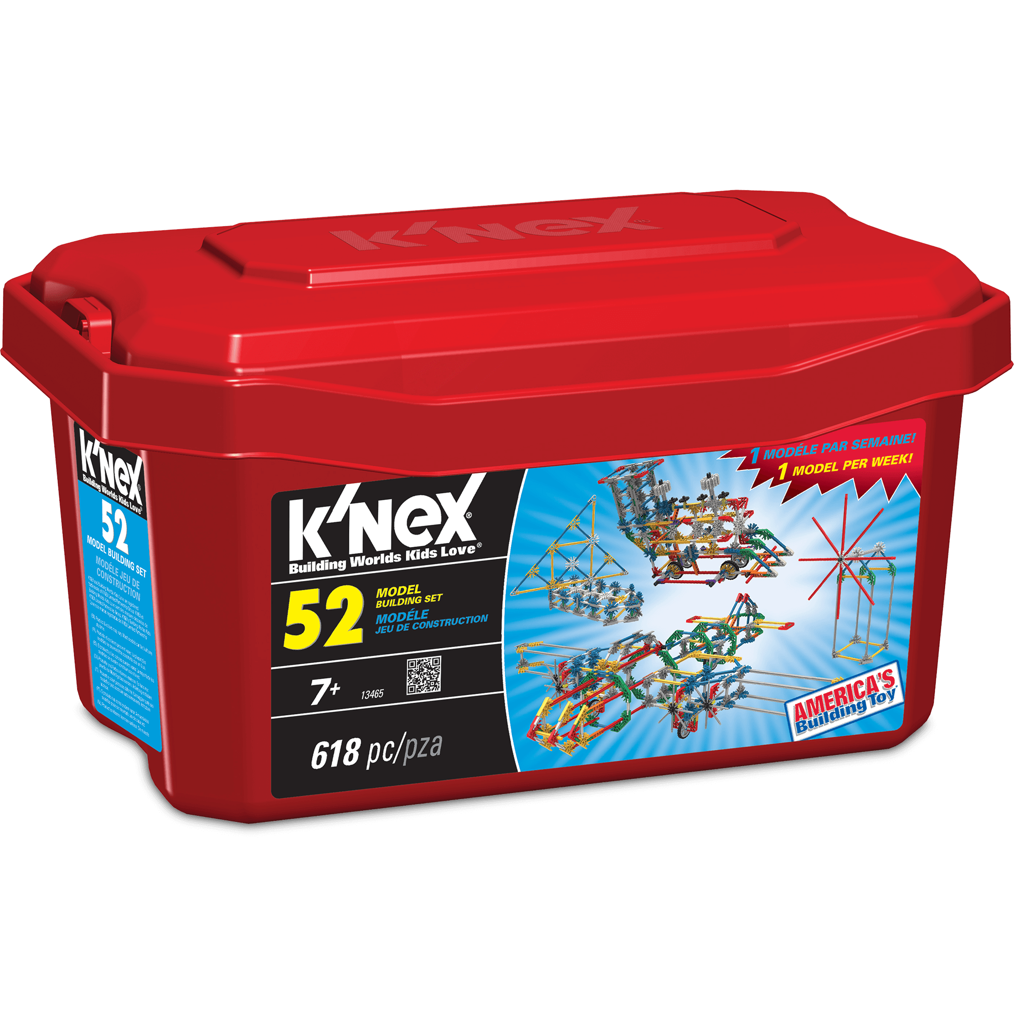 Specs====- Model: 13465- 618 pieces- Includes directions for 52 models- Comes with plastic storage tub- Ages 7+Condition - NewWarranty - One Year Limited K’NexShips Via - FedEx SmartPost- $5 Shipping, Free with **VMP**What’s in the Box?====1x Plastic storage tub618x K’Nex pieces1x Idea BookPictures====What’s in the box?! Another boxIt’s a firetruckProbably like a cat and dog or somethingSailboatSailboat’s mortal enemyTrollPrice Check====$22.34 at Amazon$34.99 List