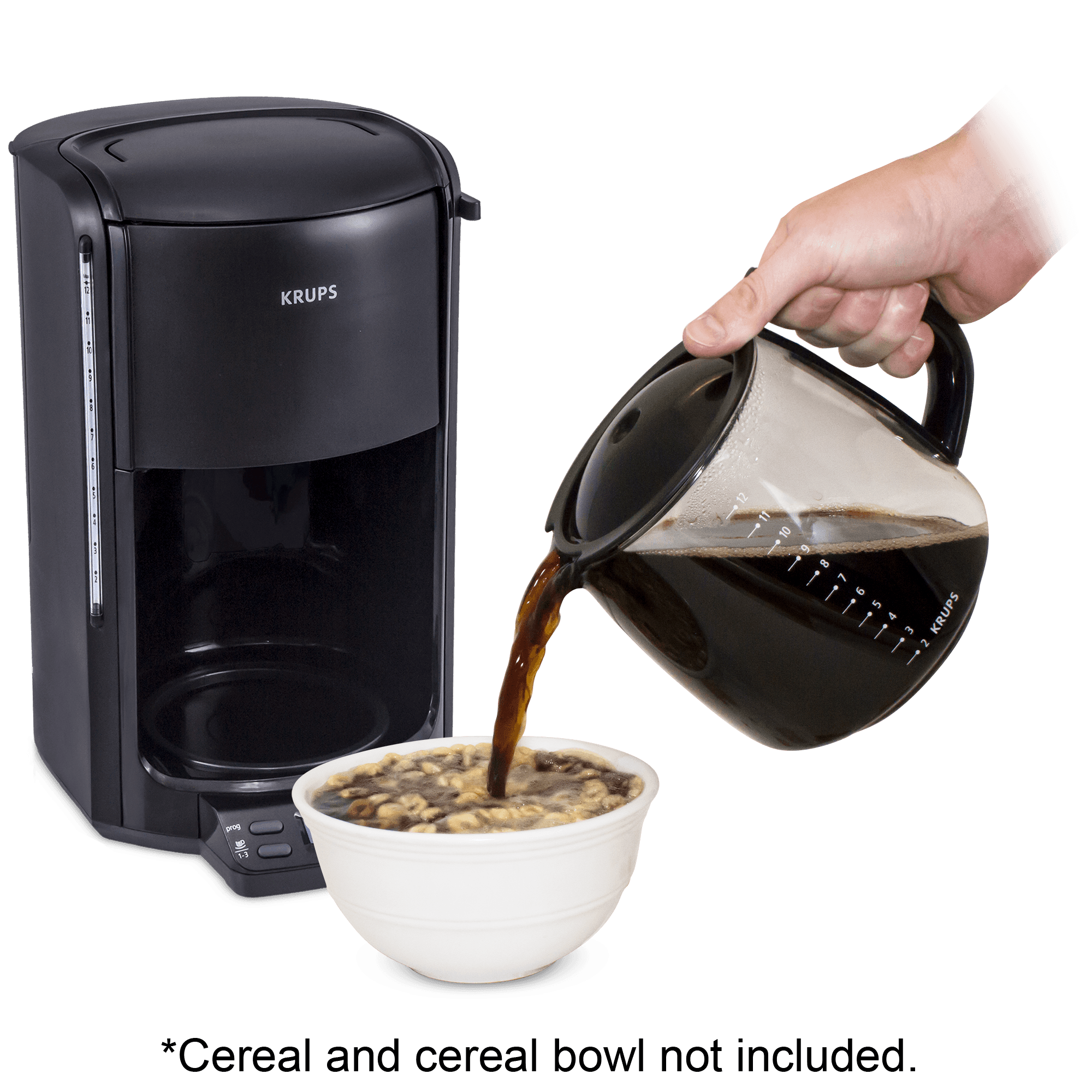 Specs ====- Model: FME214- Capacity: 12 cup glass carafe- Filters: #4 size or permanent filter (not included)- Auto On and Auto Off settings- Electronic Limescale detection indicates when unit needs to be descaled- ‘Aroma’ setting for stronger, more slowly-brewed coffee- 1-3 cup flavor setting brews smaller quantities - Pause 'n Serve stops brewing for grabbing a cup mid-brew- Optional Duofilter water filtration filters chlorine and scale for 2 months (2 pack on-brand replacements at Amazon) (6 pack off-brand replacements at Amazon)- Adjustable heating plate stays hot for 1-5 hours- Cord can be retracted into unit for storage- Wattage: 1100- User manualCondition: RefurbishedWarranty: 30 Day PRCEstimated Delivery: 6/25 - 6/27Shipping: $5 or free with **VMP**What’s in the Box?====1x Krups coffee maker1x 12-cup glass carafe1x Duofilter filter1x User manualPictures ====Coffee makerEverything includedOpened top viewRetracting plugTwo parts of a complete breakfastPrice Comparison====$72 List, $59.99 (new) at AmazonFind a relevant price comparison? Please share it in a comment in this thread