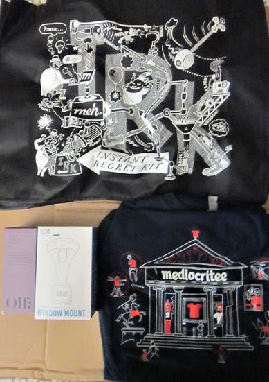 Except instead of screen cleaner, I got a Swiss Tech key cable thingy, and instead of Star Wars ship I got electrode pads, and instead of revitalizing skin cream I got eyelashes. Otherwise, exactly the same!