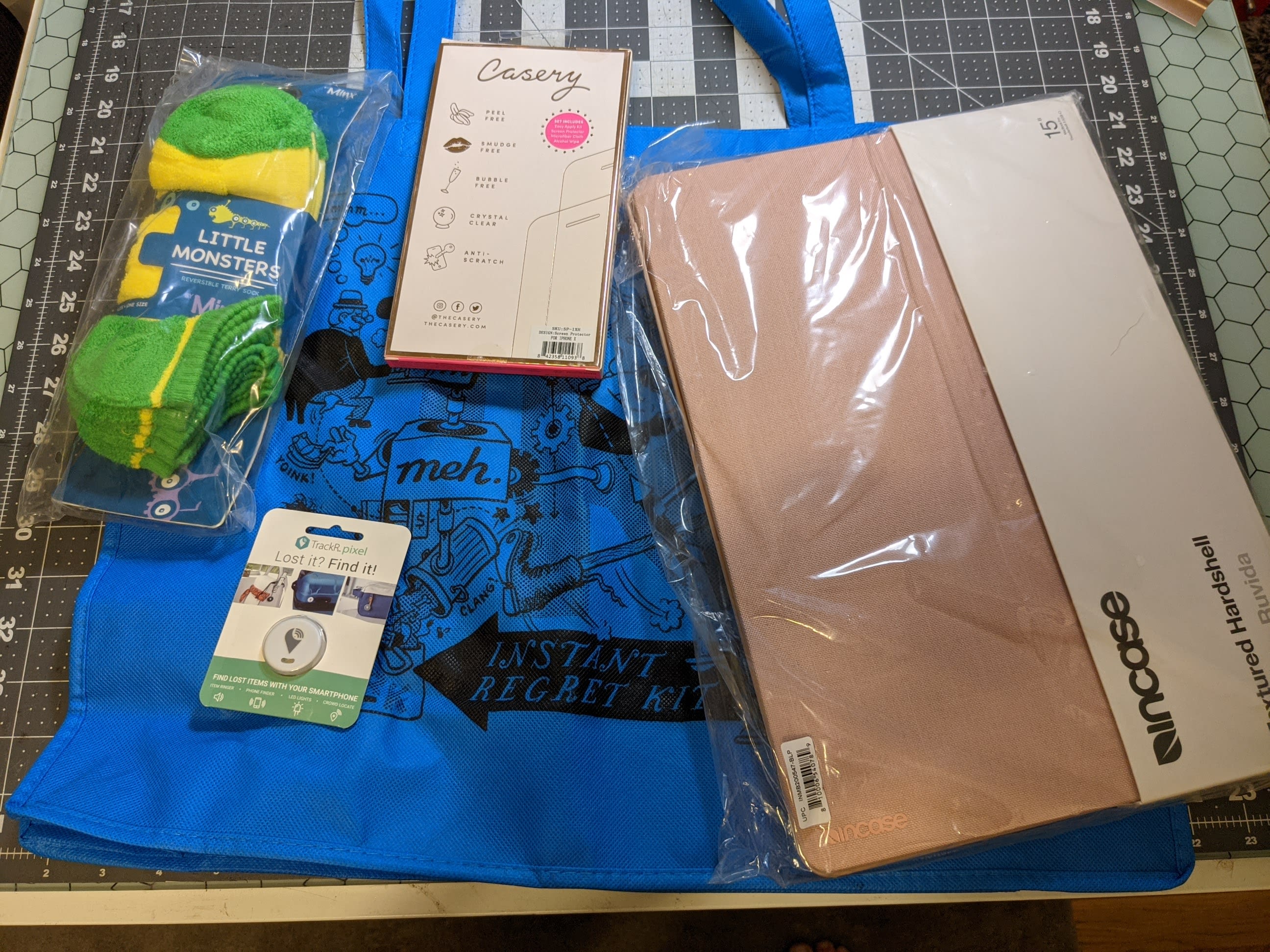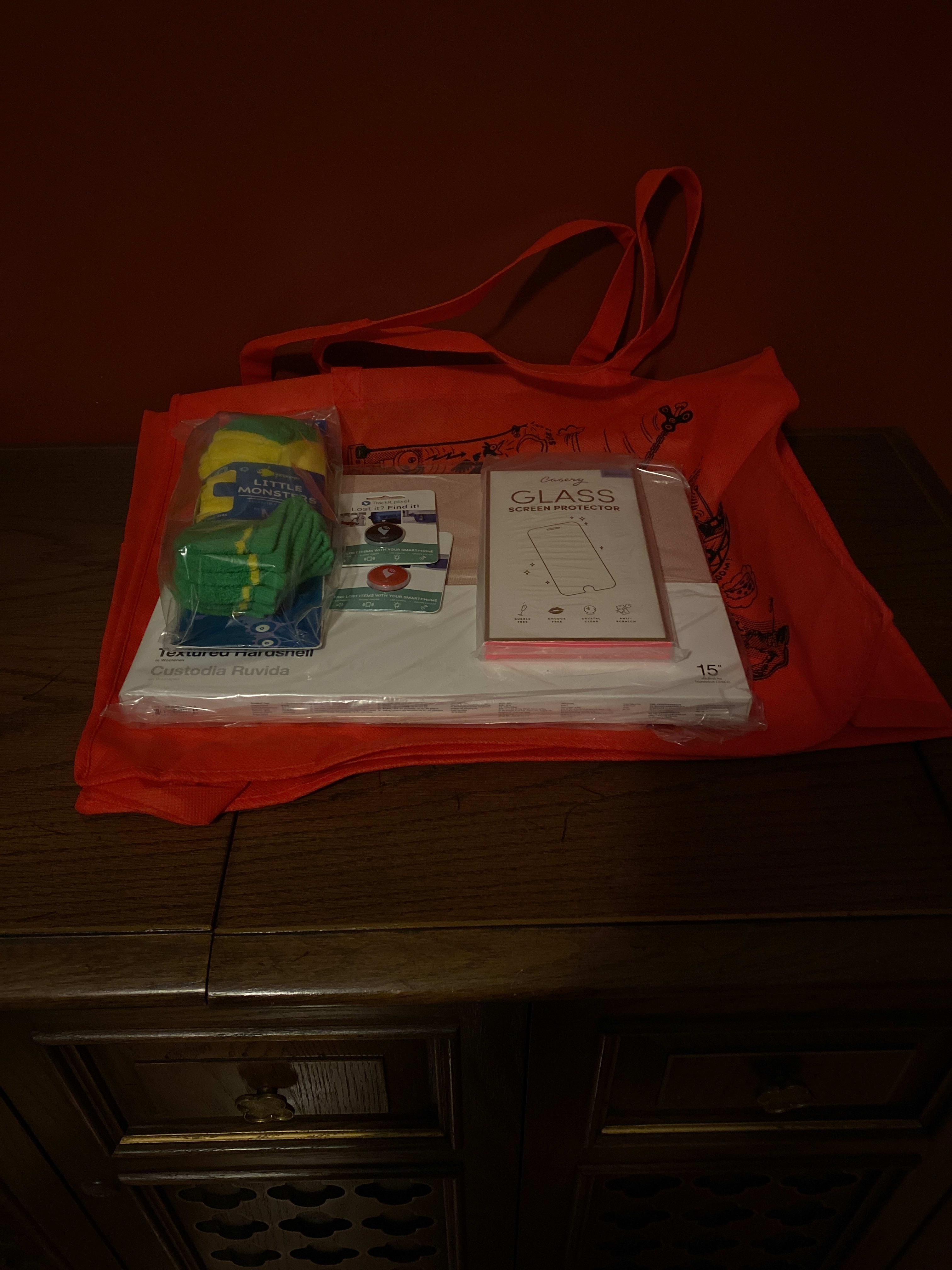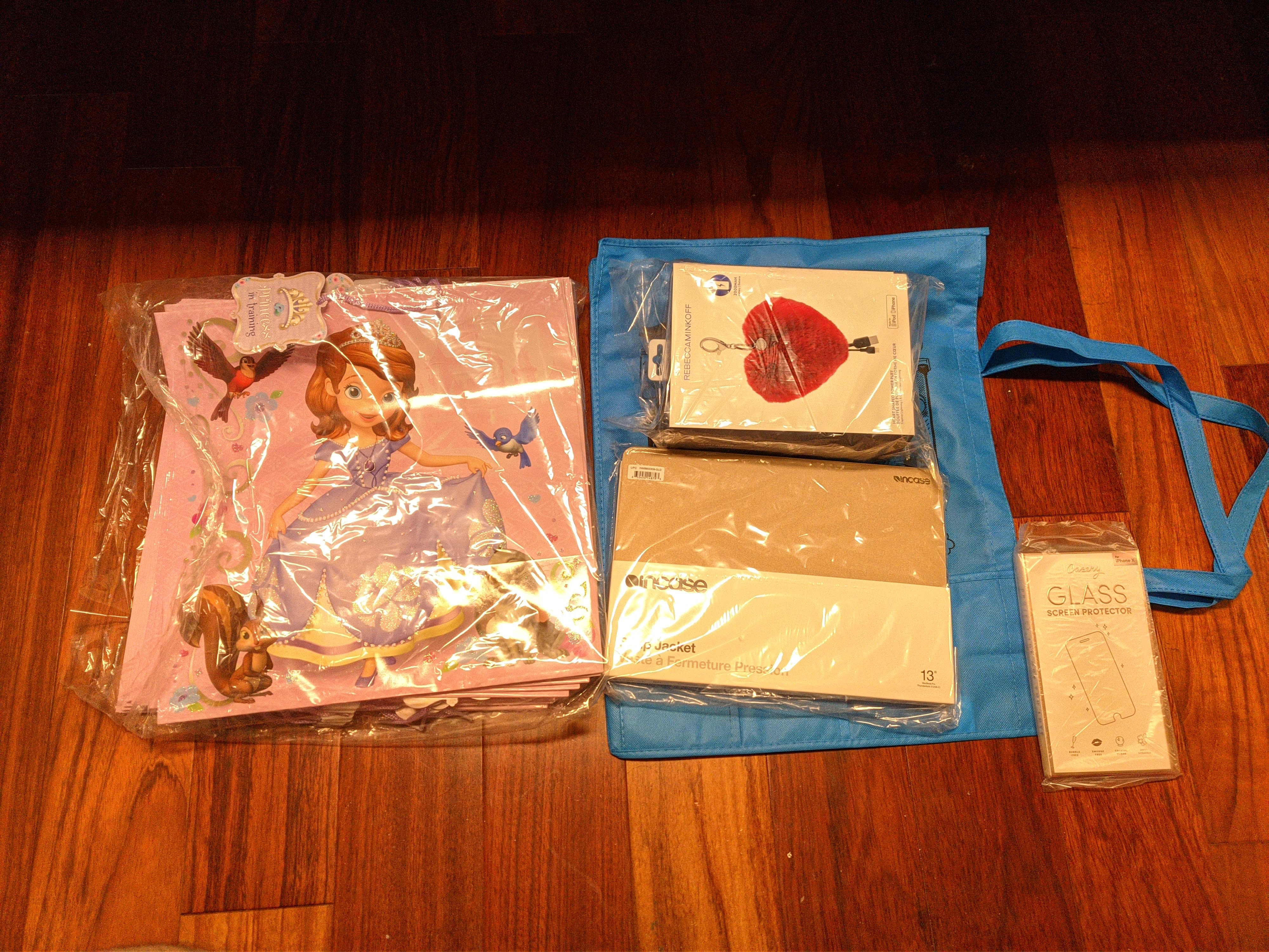I got red bag, another MacBook case, lil monster socks which works bc I’m a big little monster myself, couple more trackers to add to the collection and iPhone X case. Wouldn’t have minded the princess bags (I’d use them for presents or the cake platters, those I would definitely use.