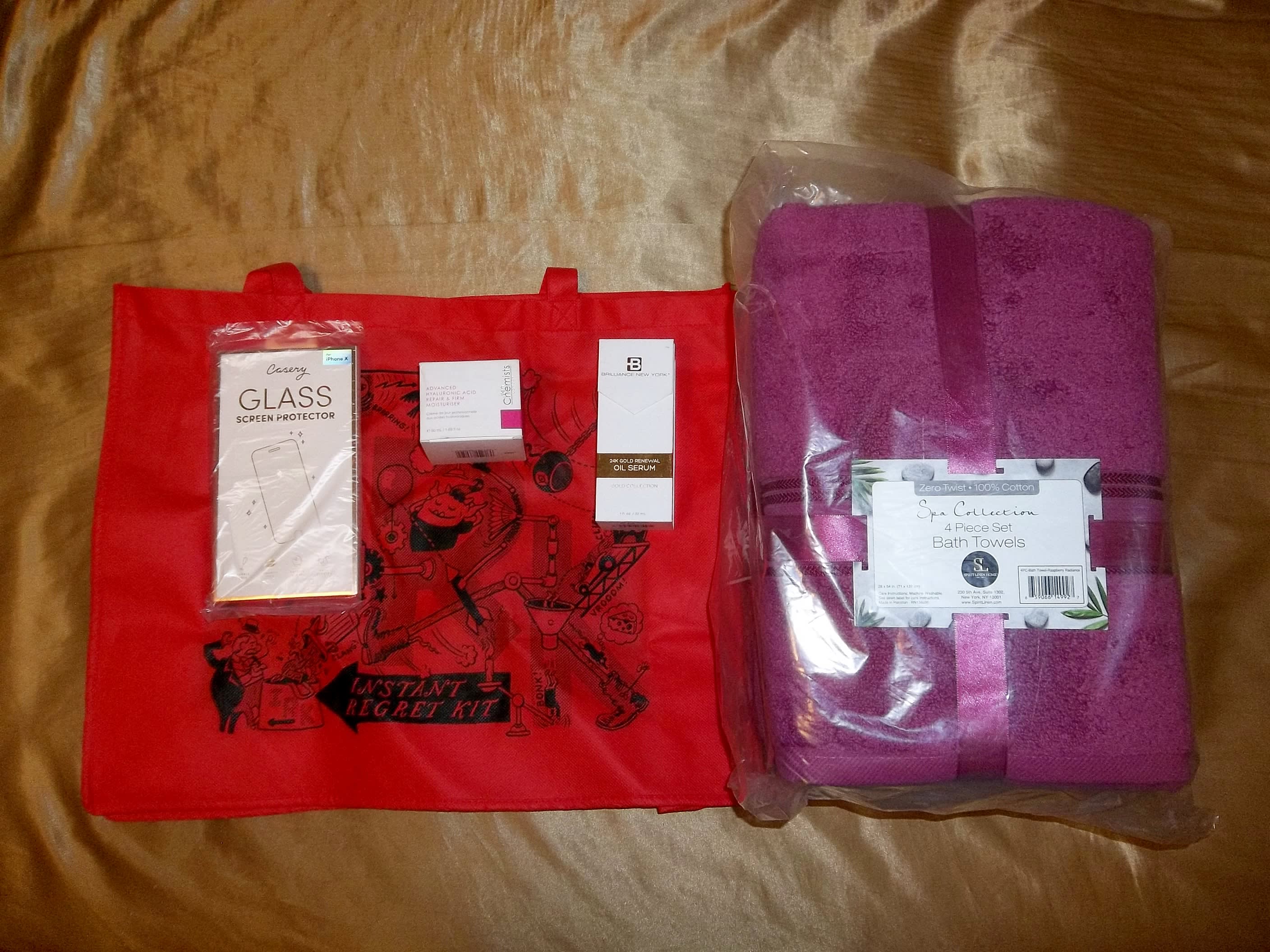 @cbooboo2. Pretty much the same for me, except one less regret of the phone case and 8 less regrets of the gift bags (got a 12 pack). Super fast delivery though!