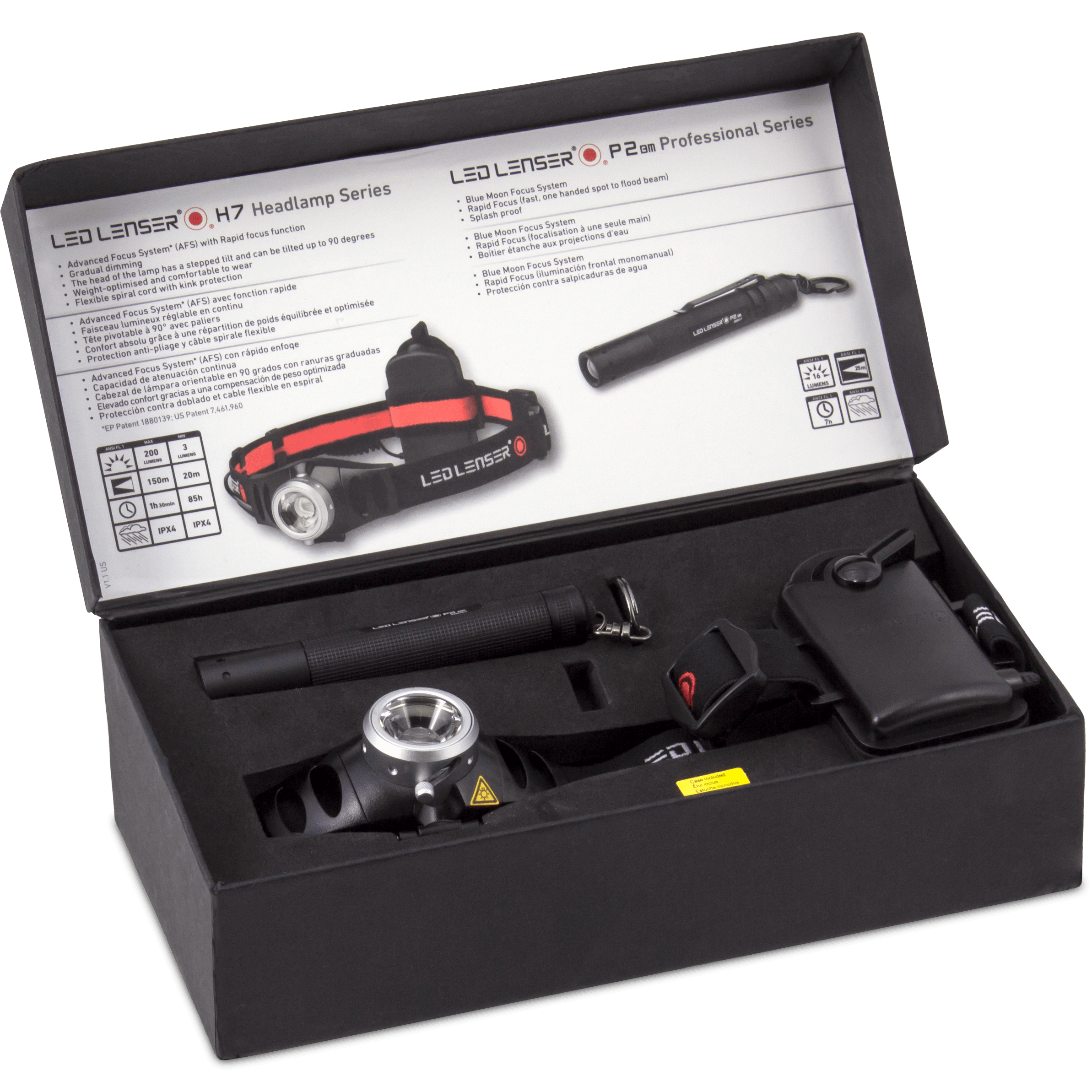 Specs ====- Model: 880119**- Headlamp:- Model: H7- Lumens: 3 - 200- Distance: 20 - 150 meters- Battery life: 1.5 - 85 hours- Waterproof rating: IPX4 (protection from splashing from any direction)- Rapid Focus lets you adjust the focus quickly with a lever on the front- Gradual/stageless dimming with switch on back- Lamp head can point straight ahead or point down as far as 90 degrees- Weight-optimized for comfort- Power: 3x AAA batteries (included)- Flashlight:- Model: P2BM- Lumens: 16- Distance: 25 meters- Battery life: 7 hours- Waterproof rating: IPX4 (protection from splashing from any direction)- Blue moon focus system- Rapid Focus by pulling the end out- Power: 1x AAA battery (included)Condition: NewWarranty:** 5 Year LED LENSEREstimated Delivery: 6/17 - 6/19Shipping: $5 or free with **VMP**What’s in the Box?====1x LED LENSER H7 Headlamp1x LED LENSER P2BM Flashlight1x Carabiner holster for flashlight1x Beltloop holster for headlamp1x LanyardPictures ====Fancy boxEverything insideHeadlamp angleBattery packFocusScaleIronmanPrice Comparison====$55.99 at Amazon$35.98 for just the headlamp at Amazon$24.20 for just the flashlight at AmazonFind a relevant price comparison? Please share it in a comment in this thread