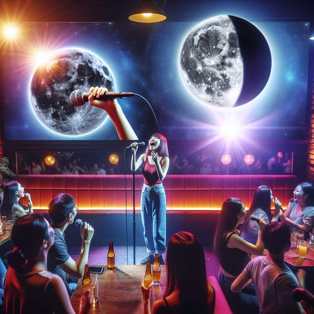 /showme Karaoke total eclipse of the heart that shows Bonnie Tyler’s song mixed with the recent full eclipse last month