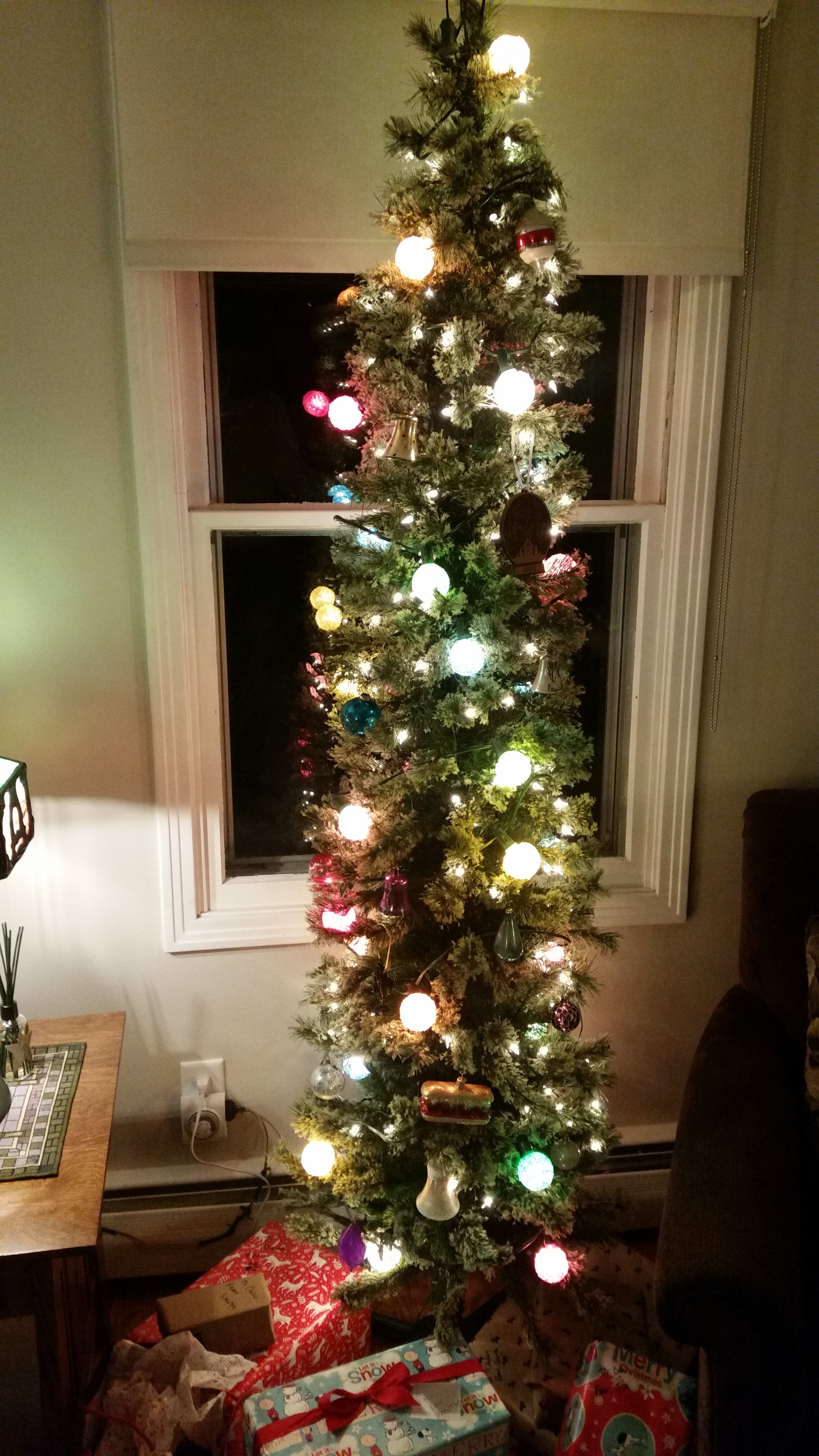 We were late decorating our tree. And late buying our tree. It’s pretty darn lucky we have a tree at all. You can play spot the Meh ornaments!