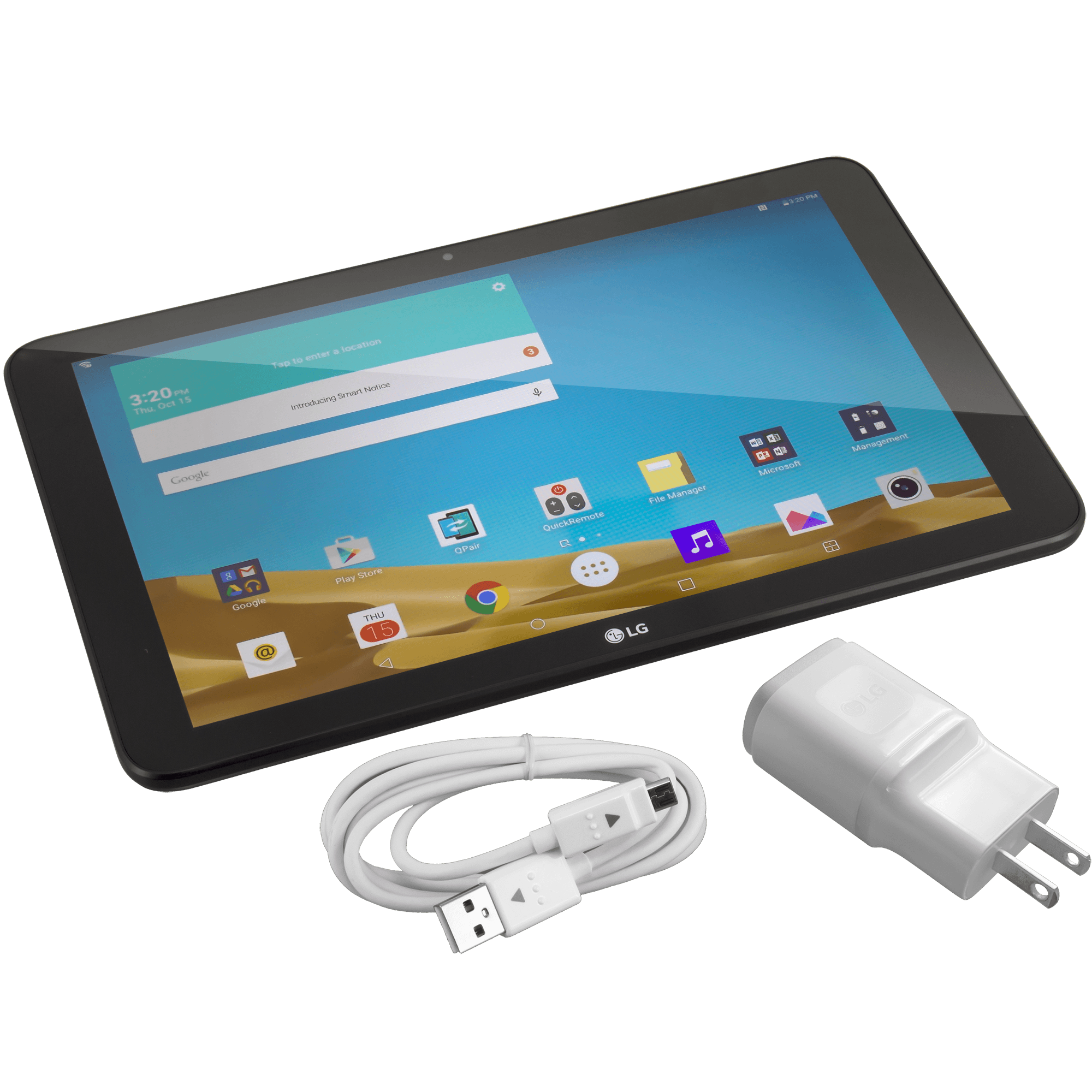 Specs ====- Model: LG-V940n- Condition: New- Screen: 10.1" IPS- Native resolution: 1920 x 1200- Pixel density: 224 ppi- Android version: 5.1.1- Processor: 2.26 GHz quad-core Snapdragon 800- Ram: 2GB- Storage: 16GB- Battery: 7400mAh- Front camera: 2MP- Back camera: 5MP- Ports: 1x Micro USB 2.0, 1x 3.5mm Aux, 1x micro SD- Wifi: 802.11a/b/g/n/ac- Dimensions: 10.0 x 6.3 x 0.3"- User manualWhat’s in the Box? ====1x Android tablet1x Micro USB charging cable1x USB power adapterPictures====Tablet front and backIncludedSideRetail boxIrkPrice Comparison====$279.97 at AmazonFind a relevant price comparison? Please share it in a comment in this thread