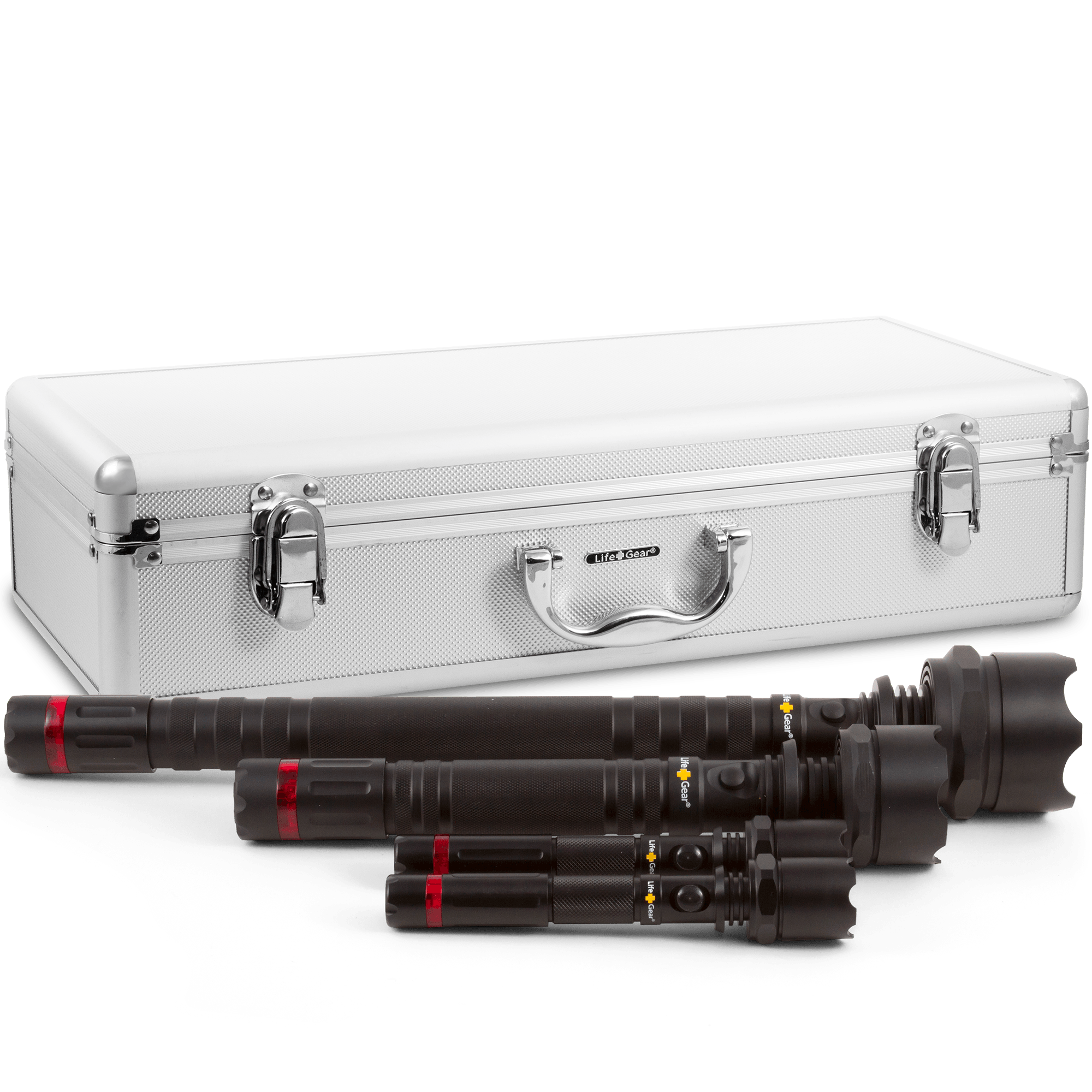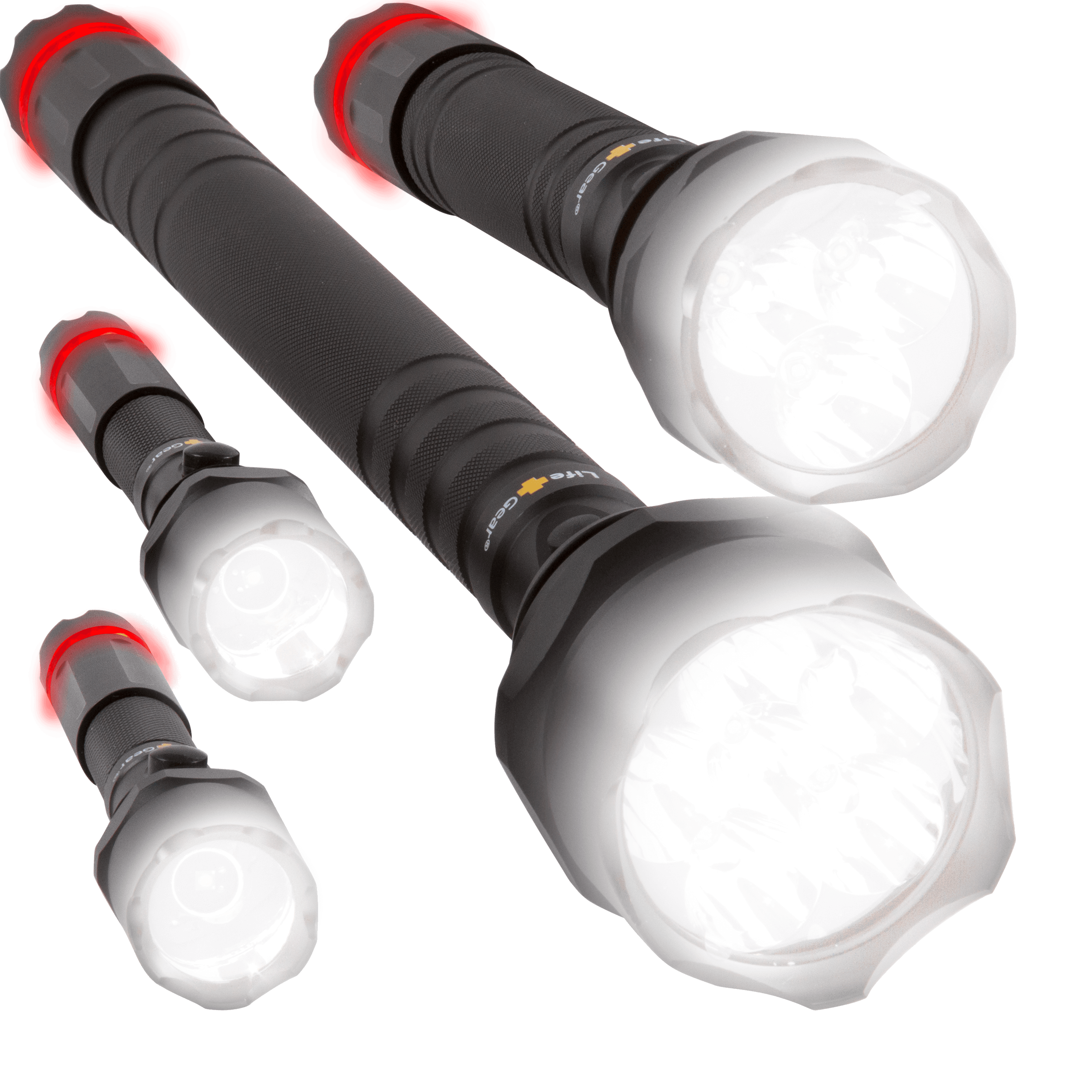 Specs====- Model # CC20-6001-BLA - Aircraft-Grade Aluminium LED Flashlights with Red Flasher- Includes 4 flashlights and case- Polycarbonate optical reflector- Red glow light bottom switch with 3 modes: Red, Red Flash, SOS- CREE LEDs- 5.7 lbs- 20.9 x 19.1 x 22.1 inchesHIGHLAND 700- Weather Resistant LED Torch- Up to 700 lumens- CREE LED Bulbs- Includes 2x CR2025 batteries- Requires 6x C Batteries (not included)- 50 hours of use on batteries- Modes: High, Low, Strobe- 17 inchHIGHLAND 400- Weather Resistant LED Torch- Up to 400 lumens- CREE LED Bulbs- Includes 2x CR2025 batteries- Requires 3x C Batteries (not included)- 50 hours of use on batteries- Modes: High, Low, Strobe- 11.5 inchHIGHLAND 80- Includes 2- Weather Resistant LED Torch- Up to 80 lumens- CREE LED Bulb- Includes 2x CR2025 batteries- Requires 1x AA Battery (not included)- 50 hours of use on batteries- Modes: High, Low, Strobe- 7.13 inchConditon - New Warranty - Limited Lifetime - Life Gear Ships Via - FedEx SmartPost - $5 Shipping, Free with VMP What’s in the Box!?====- Case- Highland 700 Flashlight- Highland 400 Flashlight- 2x Highland 80 Flashlight- Product GuidePictures====FlashlightsFlashlights with CasePrice Check====$200 at Amazon (130+ reviews)Find a relevant price comparison? Please share it in a reply to this comment