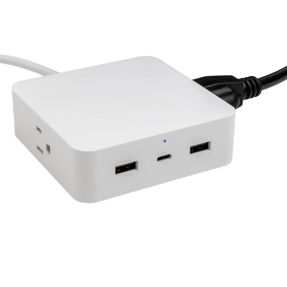 Dual grounded AC outlets support everyday electronics from laptops and monitors to fans, lamps, and small appliances