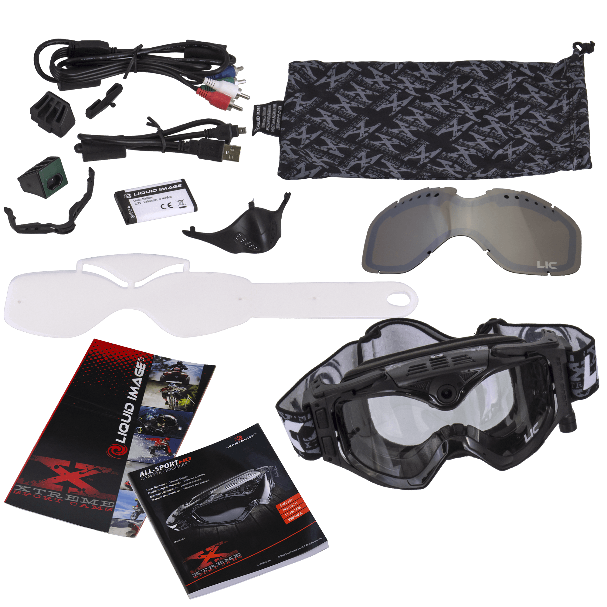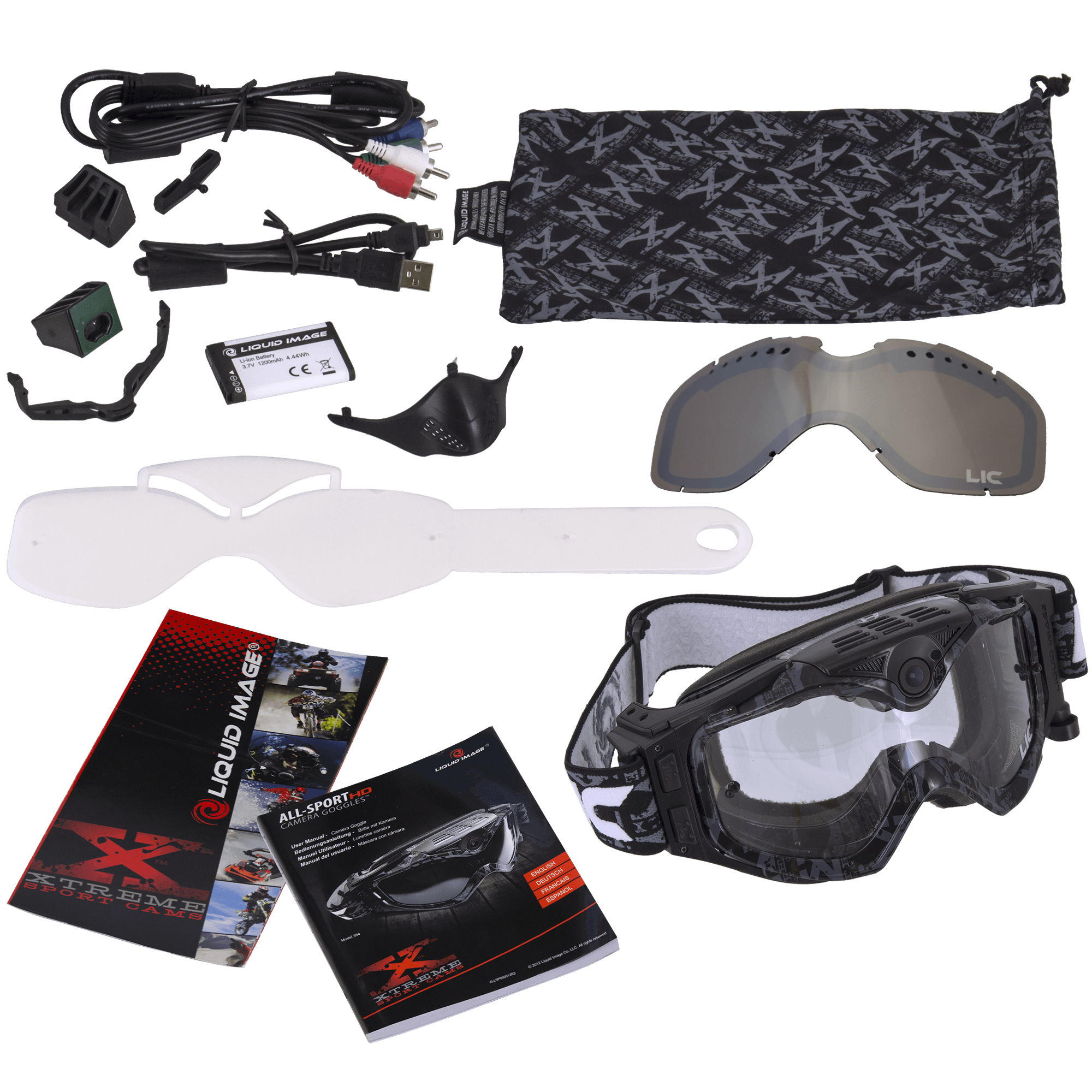 Specs ====- Model: 384BLK- Condition: New- Sensor: 5.0MP CMOS sensor- Image resolution: 2592 x 1944- Lens: F/3.2 f=3.02mm (135 FOV)- Focus range: 1.2m± External memory: Micro SD/SDHC up to 32GB (not included)- Video mode: 30FPS @ 720p (1280 x 720) with audio- File format: .JPG, .MOV- Status display: LCD display- TV output: PAL and NTSC- Power: Removable 1200mAh 3.7V lithium rechargeable battery- Includes clear lens and tinted lens- Optional wedge for changing camera angle 10- Optional nose guard- Optional outriggers for use with helmetsFull manufacturer specsWhat’s in the Box? ====1x Camera goggles1x USB charging cable1x RCA cable1x Storage bag1x Battery1x Snow lens (tinted)1x MX lens (clear)7x Tear sheets1x Nose guard1x Outrigger lock1x WedgePictures====OptionsRetail boxBlackIncluded with BlackPatternEverything included with PatternPrice Comparison====$50.60 at AmazonFind a relevant price comparison? Please share it in a comment in this thread
