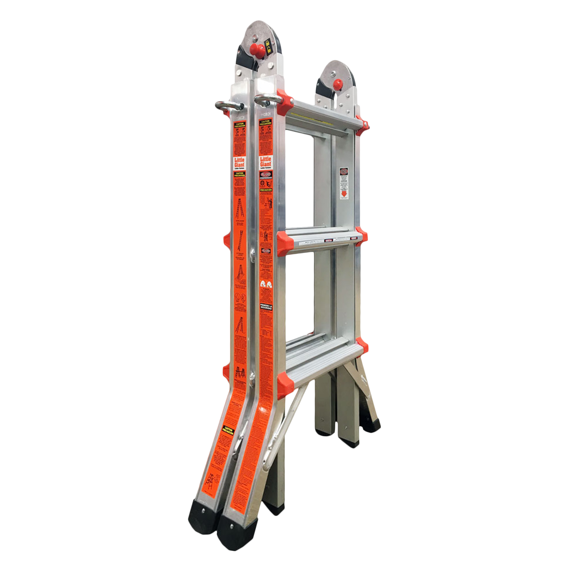 Specs====- Model: 18413-001- Condition: New- Hinge locks and telescoping sides for use as an adjustable extension ladder, A-frame ladder, staircase ladder, or a trestle-and-plank scaffolding system- Wide-flared legs and rubberized feet- Aerospace-grade aluminum- Rated to hold 250lbs (in both extended and folded configurations)- Extends up to 13- Folded Dimensions: 24" W x 7.75" D x 43" H,- Weight: 22 lbWhat’s in the Box?====1x LadderPictures====