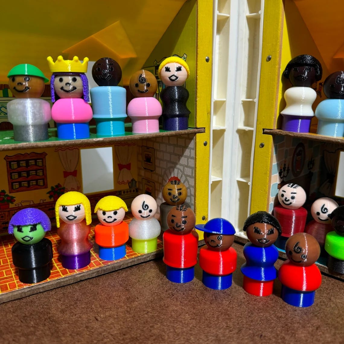 They’re custom-made figurines by Otter Toys, inspired by and compatible with the classic Fisher-Price Little People that colonized playrooms and toyboxes from 1959 to 1991. They evoke the original look with a few new wrinkles, like textured hair, and a kaleidoscope of new color and customization options. And they’re just one example of how 3d printing lets lovers of bygone toys revisit - and remix - their childhoods.